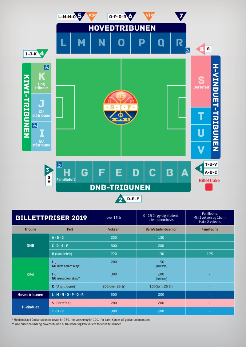DNB tribunen anbefales i hovedsak for Strømsgodset-tilhengere. Felt A, B og G er de rimeligste feltene, mens felt C-D-E og F, som ligger nærmere midten koster litt mer.