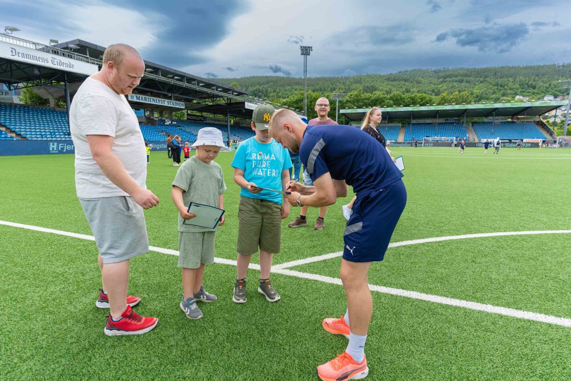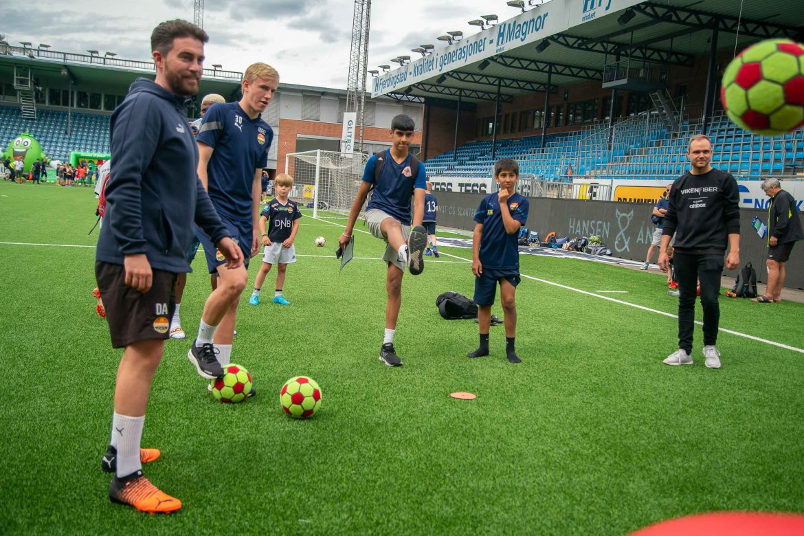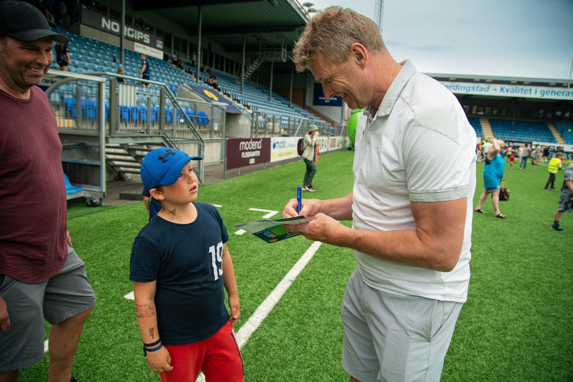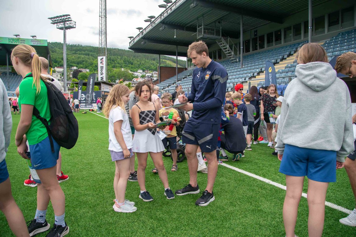 På innsiden ventet hele spillertroppen, trenerteamet, ansatte og samarbeidspartnere for å gi små og store en opplevelsesdag på gressmatta. Lykkehjul, fotballdart, hoppepute, hastighetsmålere og åpen garderobe var noe av det som ventet de fremmøte. Og det ble en strålende dag for både store og små fans denne dagen. Ta en titt på alle de fantastiske bildene vår klubbfotograf Børre E. Helgerud tok fra dagen