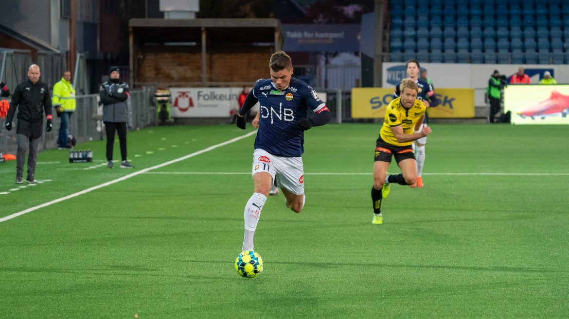 Fabian Holst-Larsen, her under hjemmekampen mot Start i 2020, der han som 15-åring ble vår yngste spiller i en eliteserietropp siden Martin Ødegaard i 2014.
