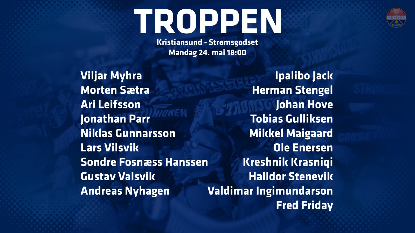 Strømsgodset reiser med en tropp på 19 spillere til morgendagens bortekamp mot Kristiansund. Se hvilke spillere som er med her.