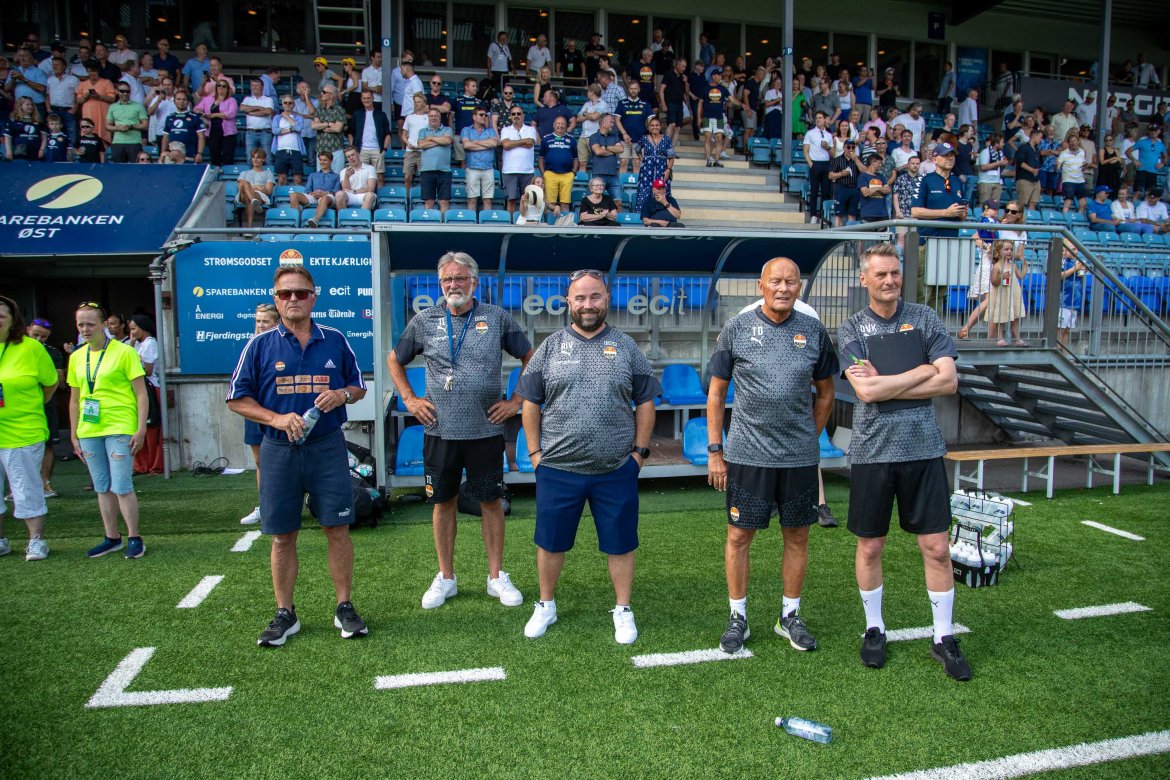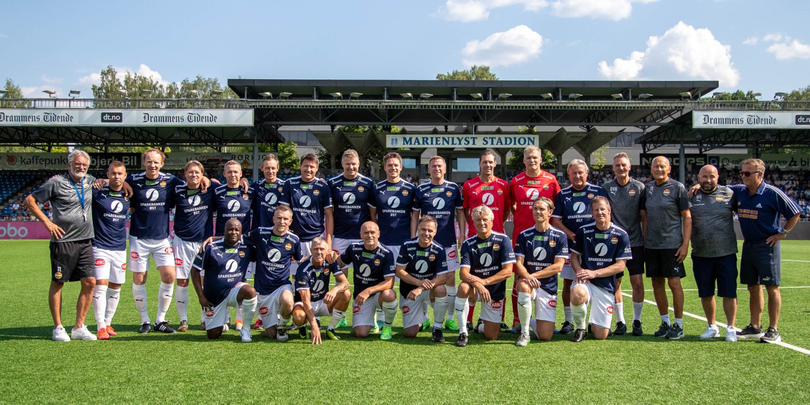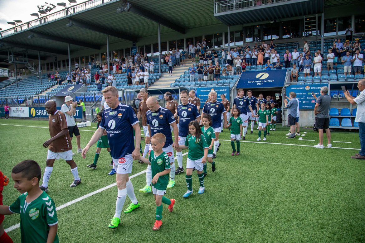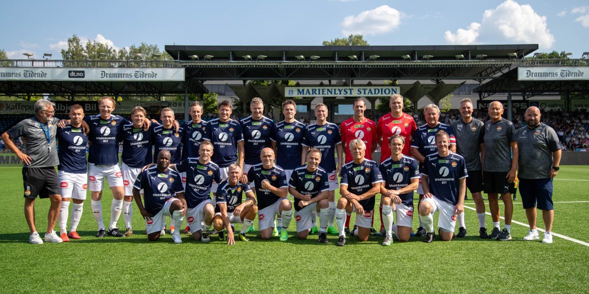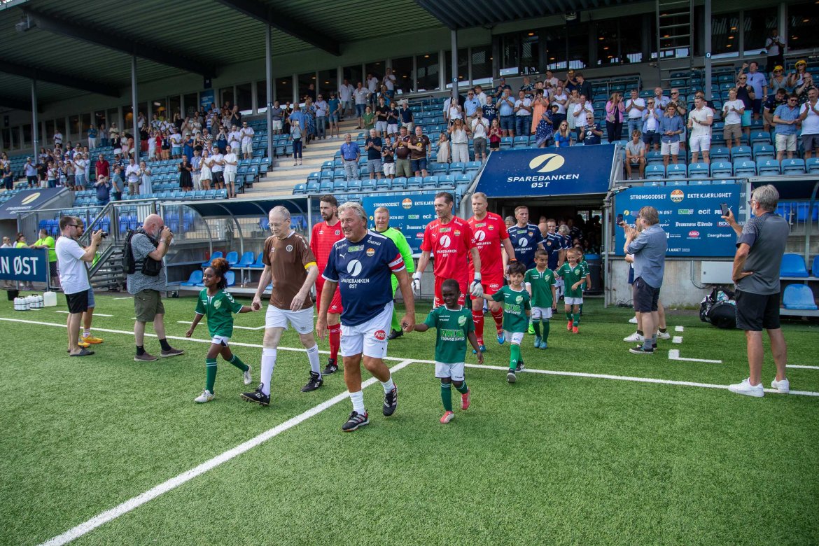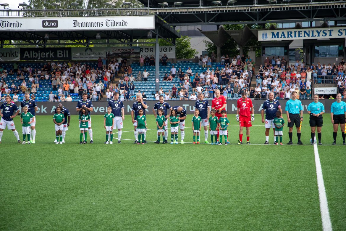 Anført av kaptein Helge Karlsen ble kampen blåst i gang og det var Mjøndalen som kom best i gang og gikk til pause med en 2-0 ledelse. I pausen var det duket for enda mer nostalgi når Strømsgodset Musikkorps spilte opp til "Anchors Away". Konferansier Håvard Lilleheie og Kristoffer Reinsfelt Arnesen sto for intervjuer av trenere og spillere underveis.
