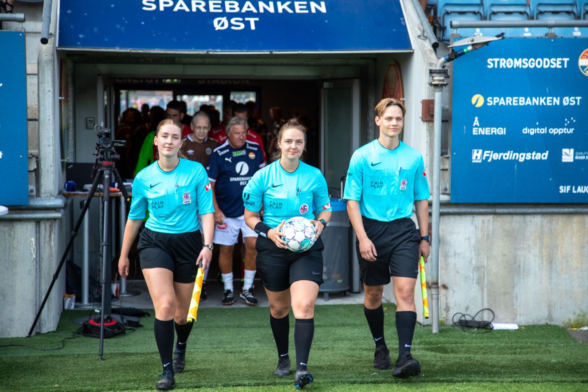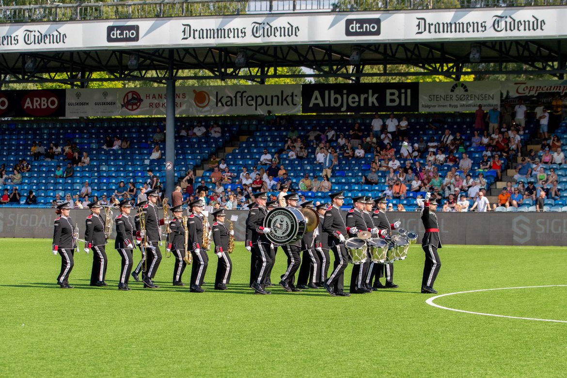 Øvrig spillertropp sto klare i spillertunnelen når speaker Rune Marthinsen dro noen historiske linjer om oppgjørene mellom Strømsgodset og Mjøndalen, før lagene marsjerte ut til "Eye of the Tiger", akkurat som på 90-tallet.