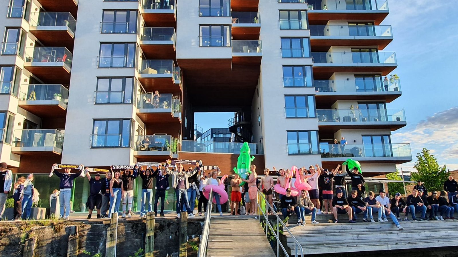 Det begynte med en "bomba" på kaia i Haugesund fra materialforvalter Roy Inge Valø etter den sterke borteseieren mot FK Haugesund i april. Siden har det nær sagt blitt en tradisjon at vi bader når vi vinner. Og etter seieren mot Viking forrige lørdag ble nesten 100 fans med fra stadion til Union Brygge for et seiersbad!
