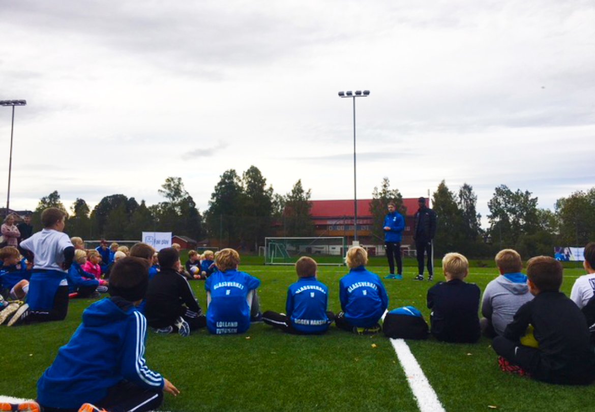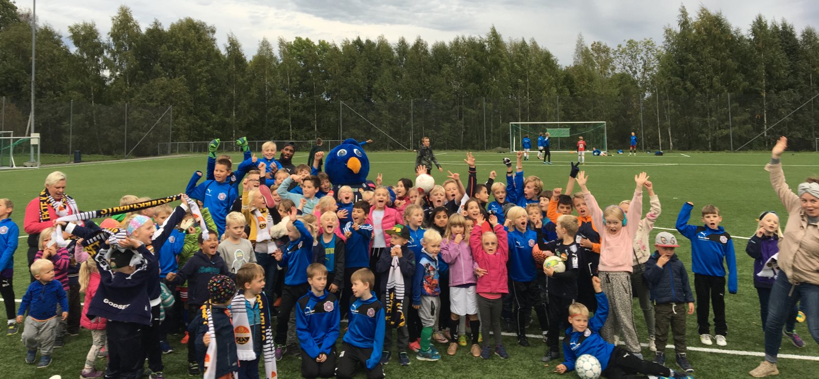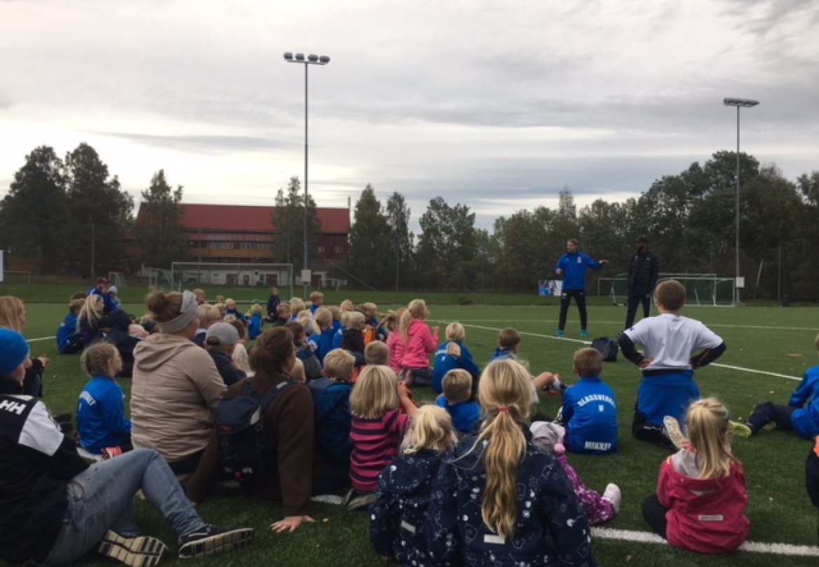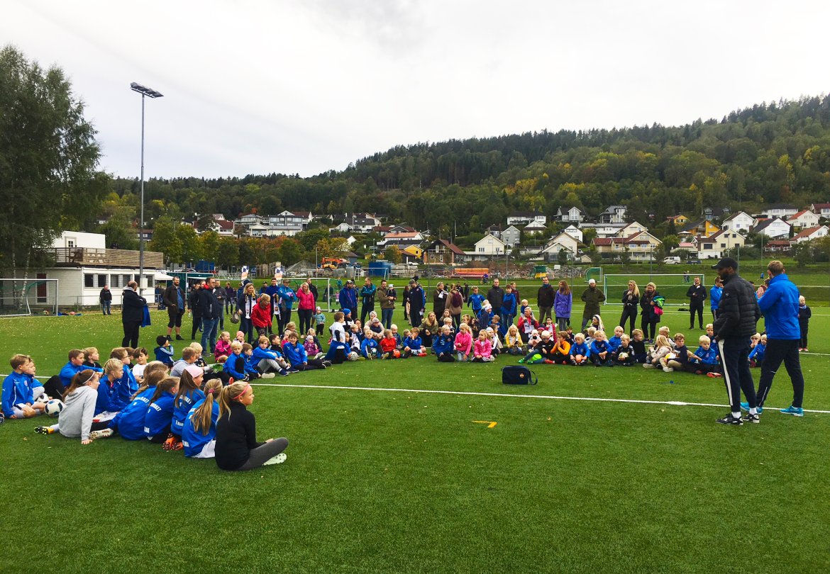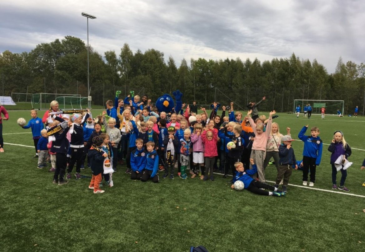 Vi inviterte alle barn i nærområdet til åpen Blåtime og gratis pølser. Og godt over 150 barn og voksne dukket opp på Åskollen idrettspark. I tillegg til vår egen Blåtime-sjef Lars Petter Eggen, tok også Hedensrud-gutten Amahl Pellegrino turen, til stor glede for barna. Pellegrino svarte på barnas nysgjerrige spørsmål, og var med å kåre vinneren i konkurransen "beste målfeiring".
