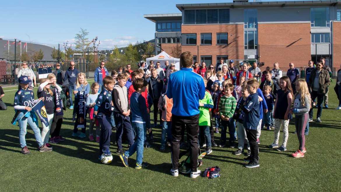 - Det er moro å se all entusiasmen. Noe av det flotteste med dette er jo også de jordnære møtene man skaper her ute på banen mellom rollemodeller og barna. Her sitter det mange barn som rekker opp handa når jeg spør om de noen gang har vært redd for å feile på banen. Når Andreas understreker hvor viktig nettopp det å tørre er for å lykkes, så er det spennende å følge opp dette videre, sier Lage engasjert.