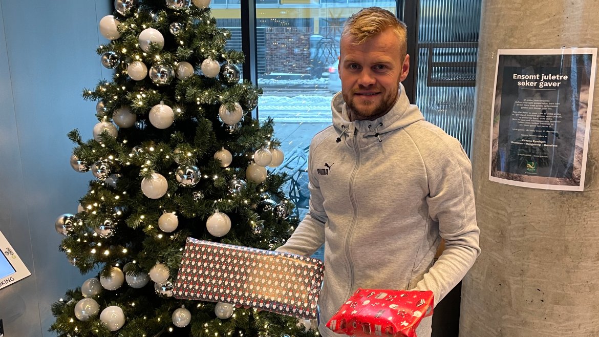 - Nå er det andre året vi spiller med Blått Hjerte på drakta og det har nå blitt en tradisjon å legge julegaver under treet på «Brunosten». Jeg oppfordrer alle til å støtte opp om Blått Hjerte og gi barn og unge en fin jul, sier Lars-Petter Eggen.
