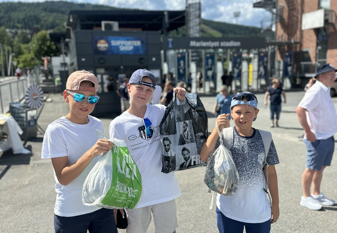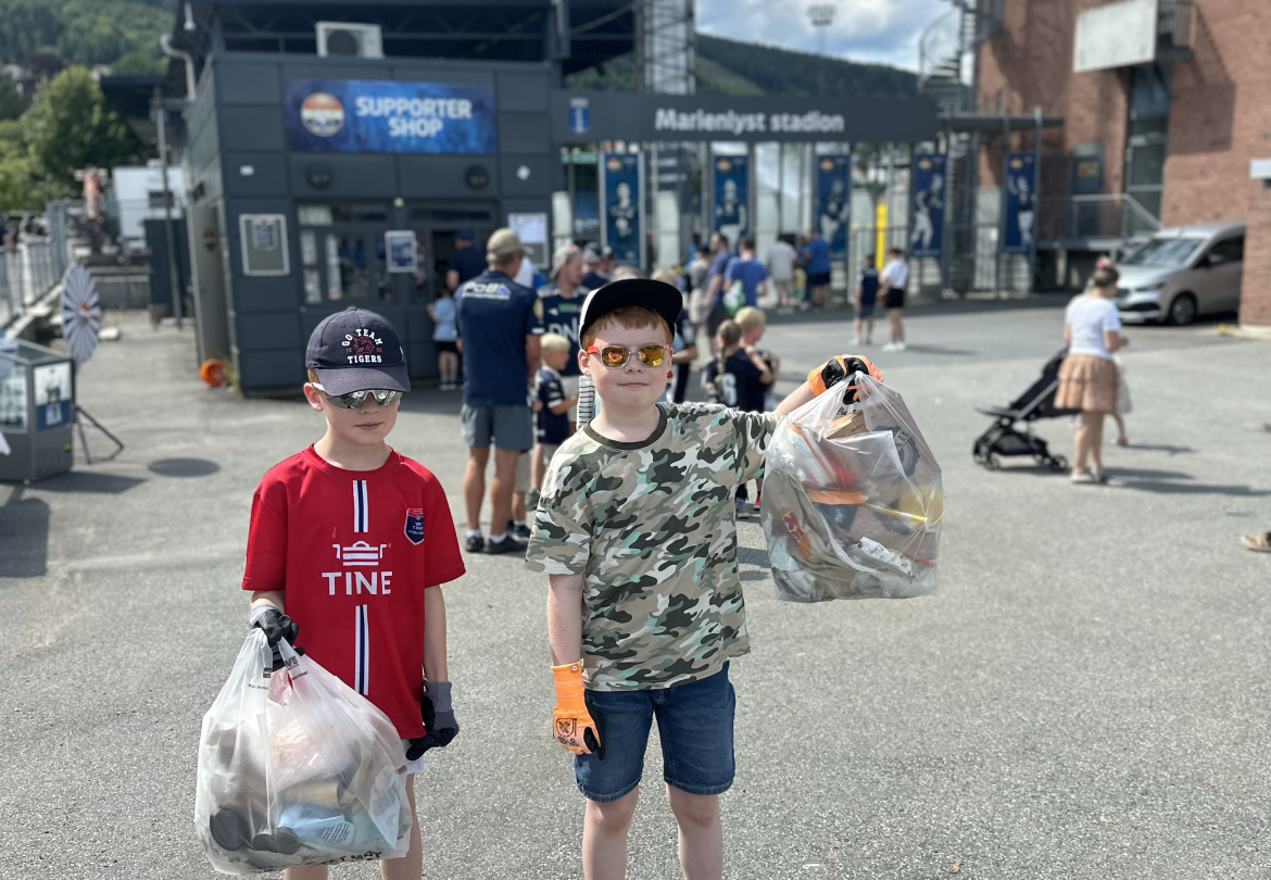 Vi rigger opp innleveringsstasjon sammen med Funder Renovasjon utenfor hovedinngangen (inngang 1) fra kl. 14:30. Her vil vi også ha utlevering av poser og hansker for de som ønsker å plukke søppel i området rundt stadion.
