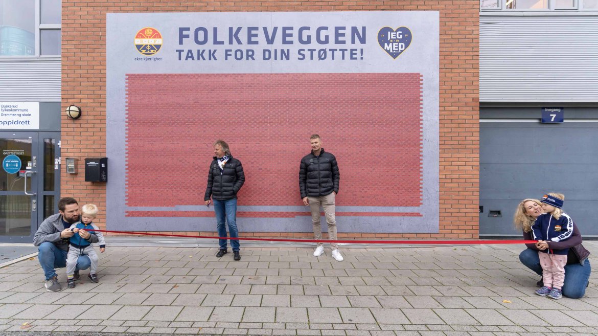 Markedssjef Rune Marthinsen og sportssjef Jostein Flo klippet snora og erklærte Folkeveggen offisielt for avduket. Til stede under seansen var også den helblå familien Nålby/Svendsen, i tillegg til lokapressen med Drammens Tidende, NRK Buskerud og Drammen Live 24.