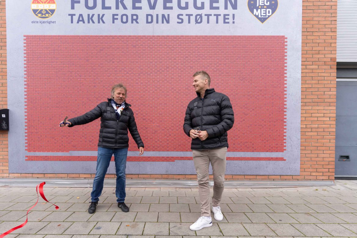 Folkeveggen er plassert på baksiden av hovedtribunen - mot kunstgressbanen. Her er den lett tilgjengelig for alle - både på kampdag og hverdag.