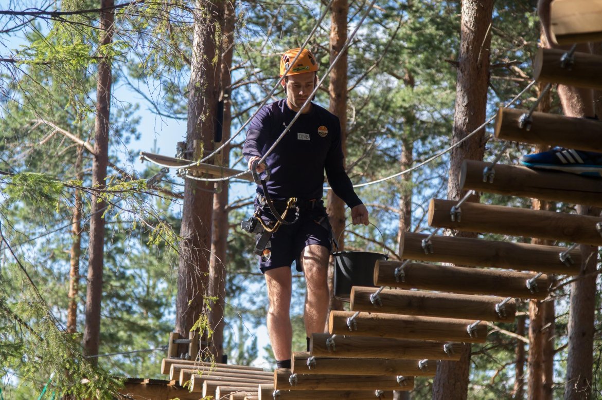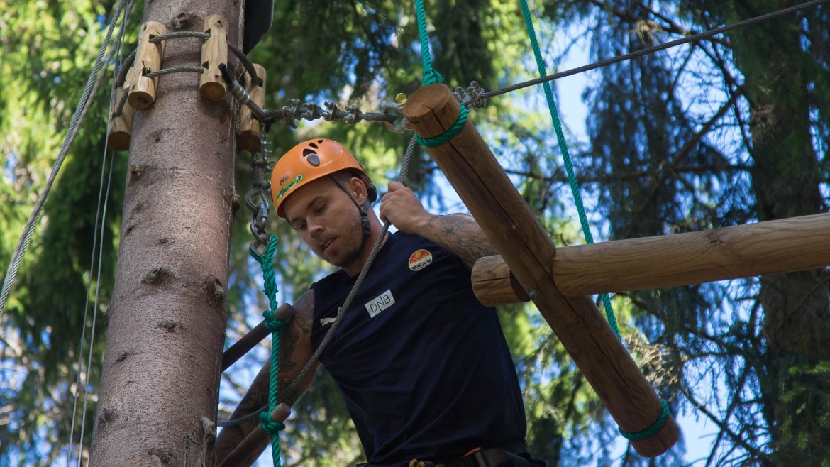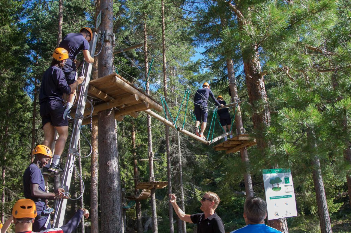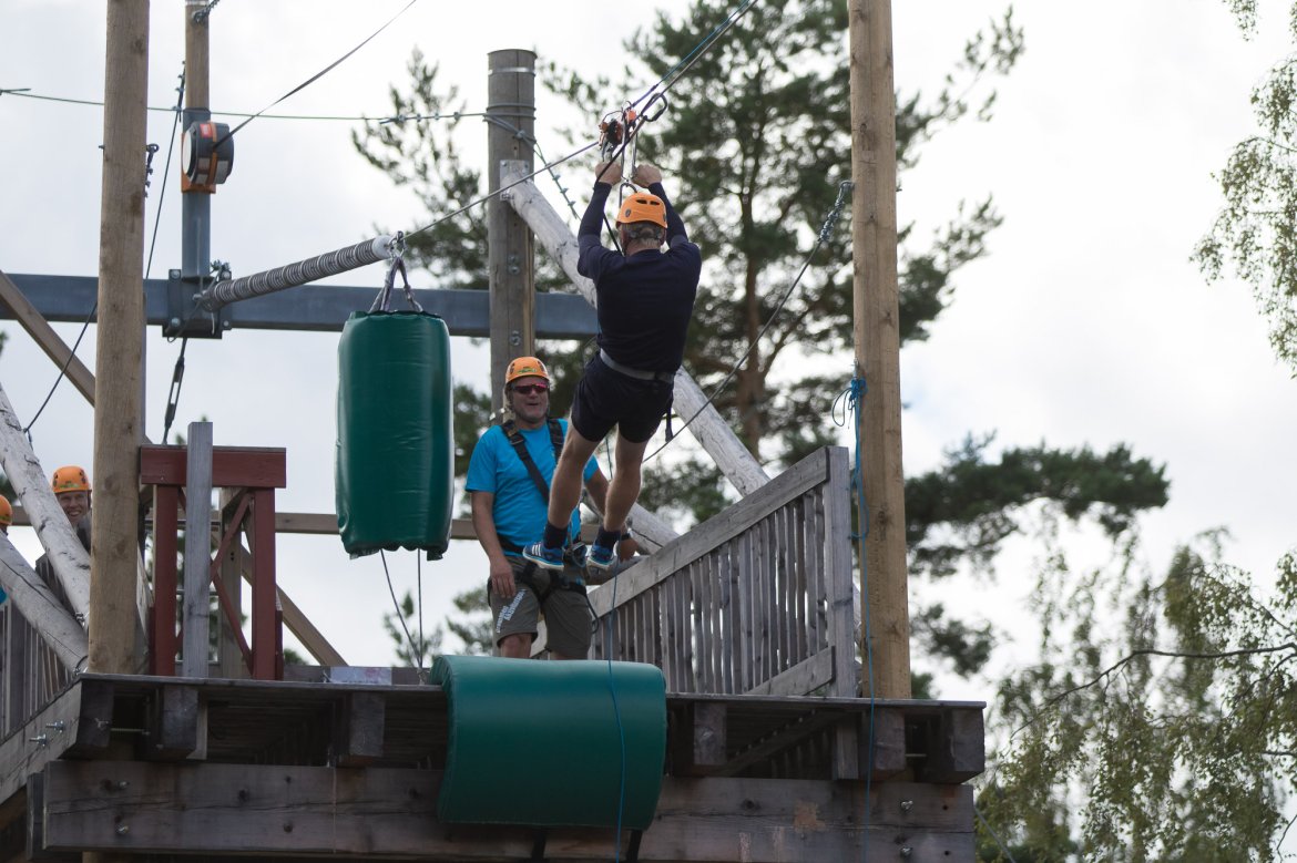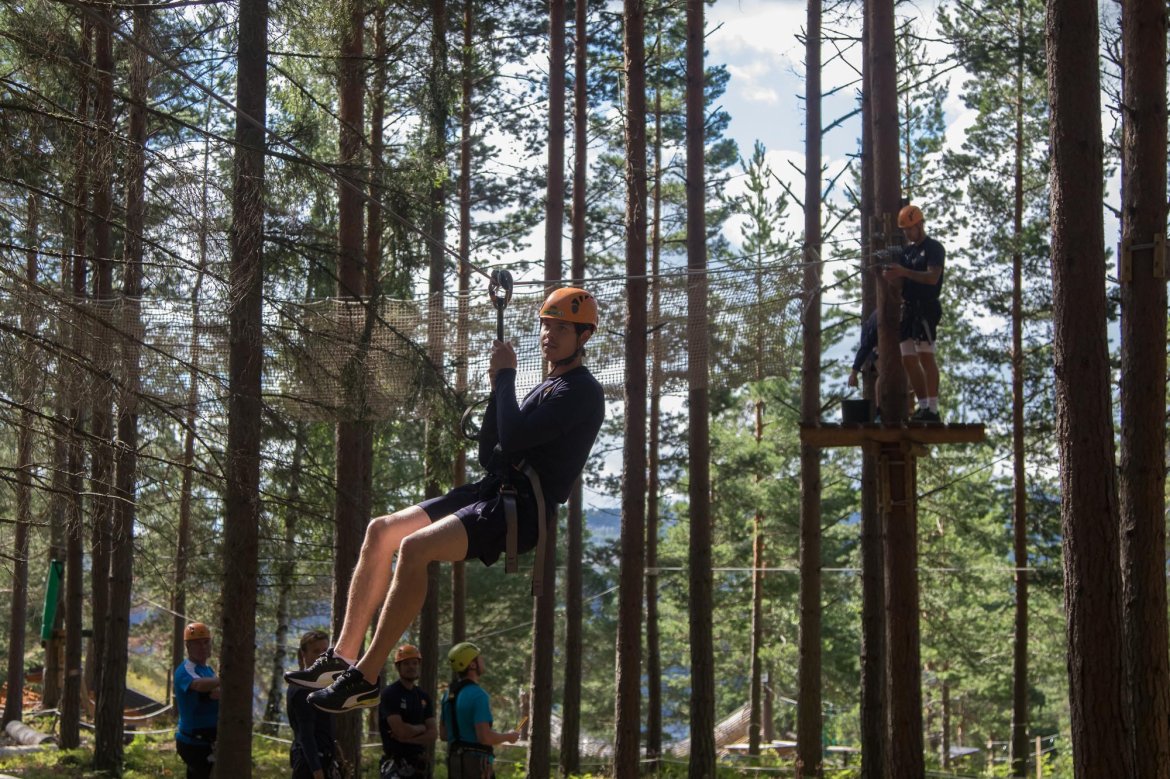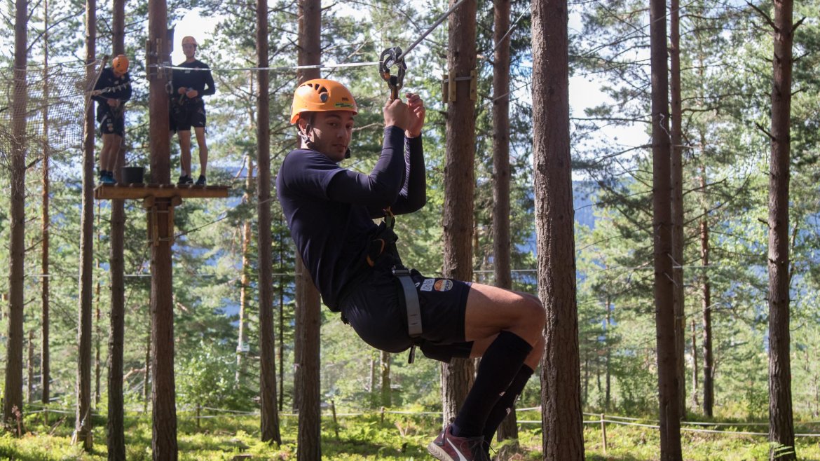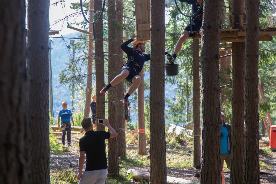 Enkelte fikk testet ut høydeskrekken, og gutta måtte virkelig jobbe hardt for poengene. Teambuildingen i Aron ble avsluttet med en "Speedy Zip-Line" der man kan komme opp i en hastighet på 65 km/t.