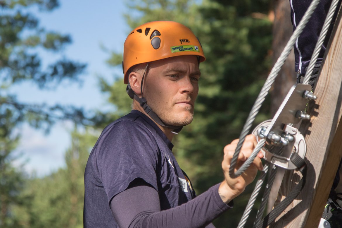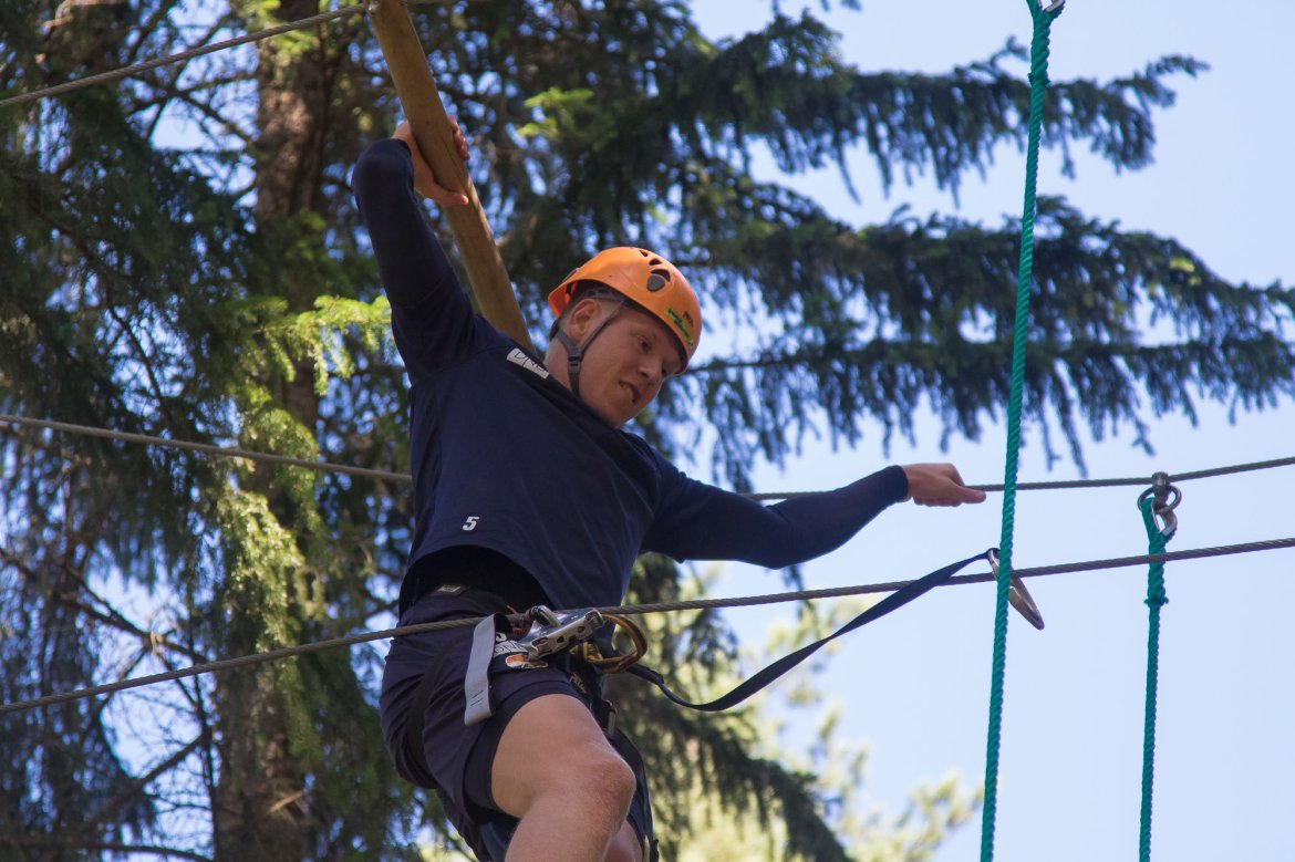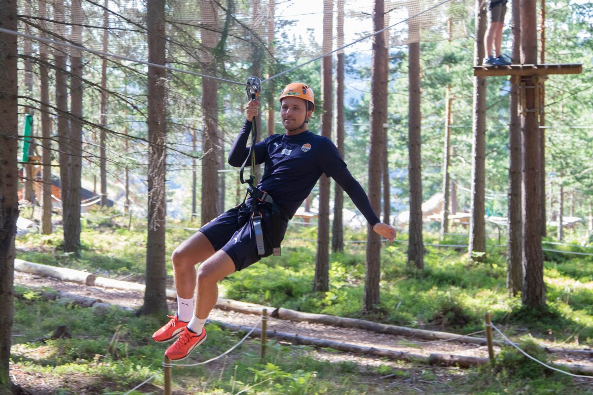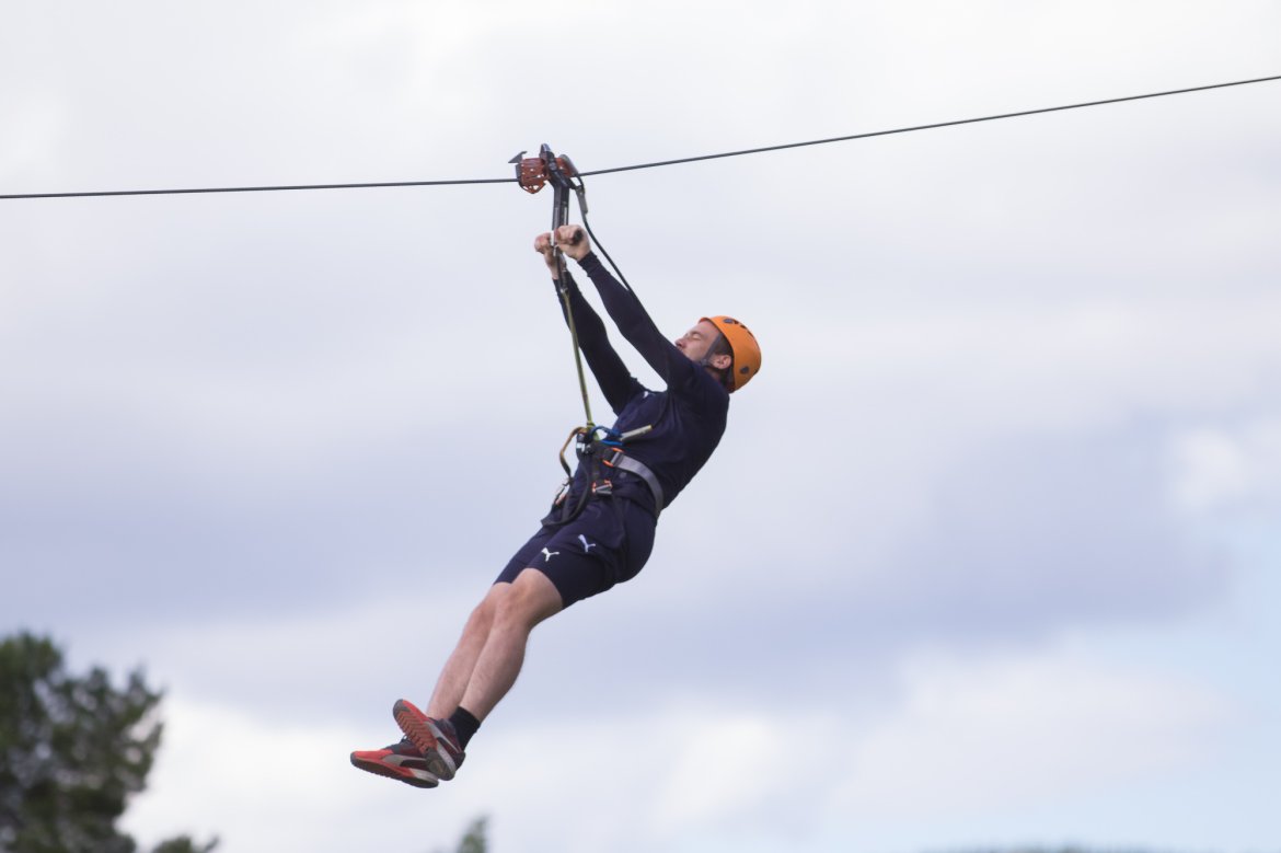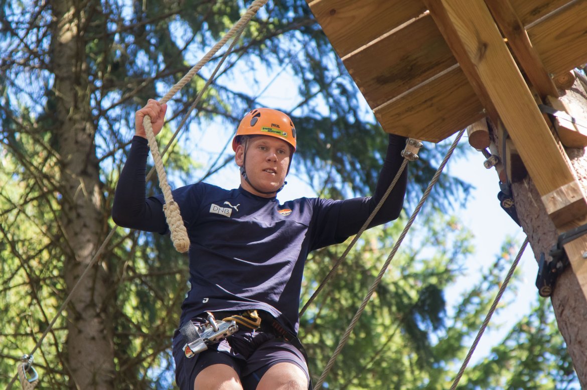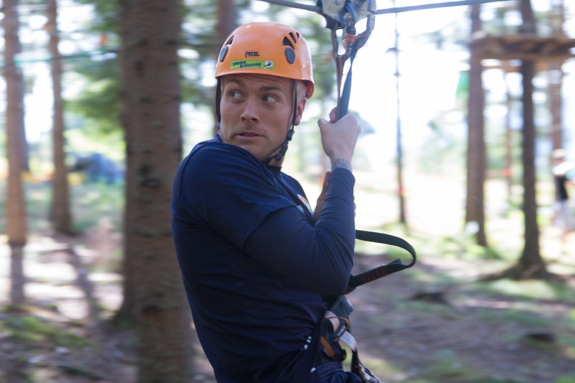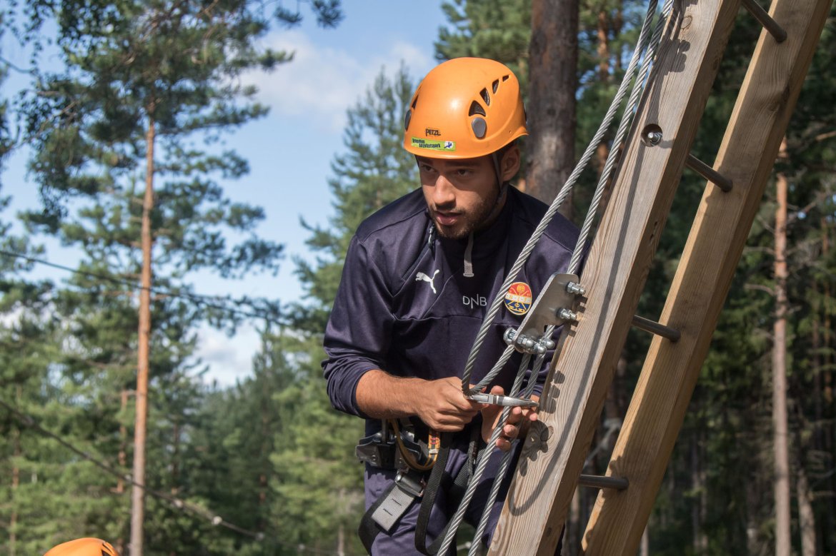 Enkelte fikk testet ut høydeskrekken, og gutta måtte virkelig jobbe hardt for poengene. Teambuildingen i Aron ble avsluttet med en "Speedy Zip-Line" der man kan komme opp i en hastighet på 65 km/t.