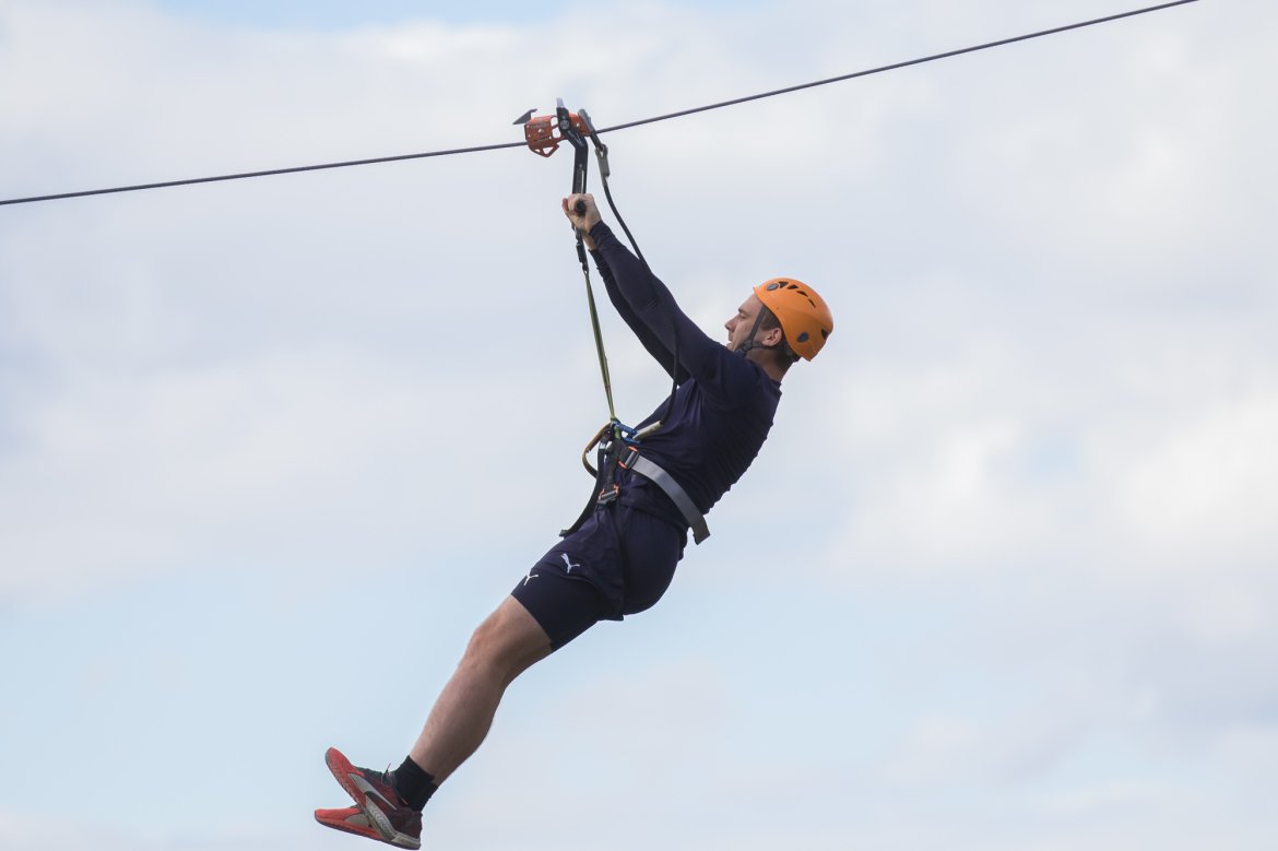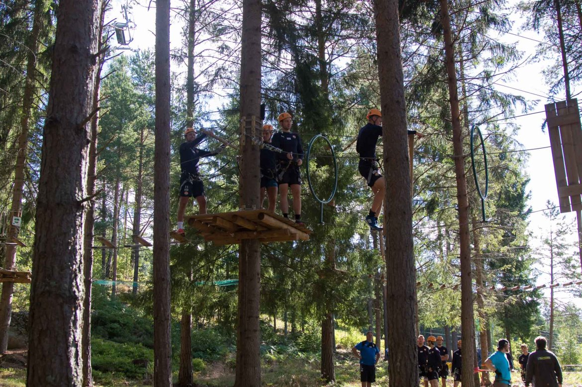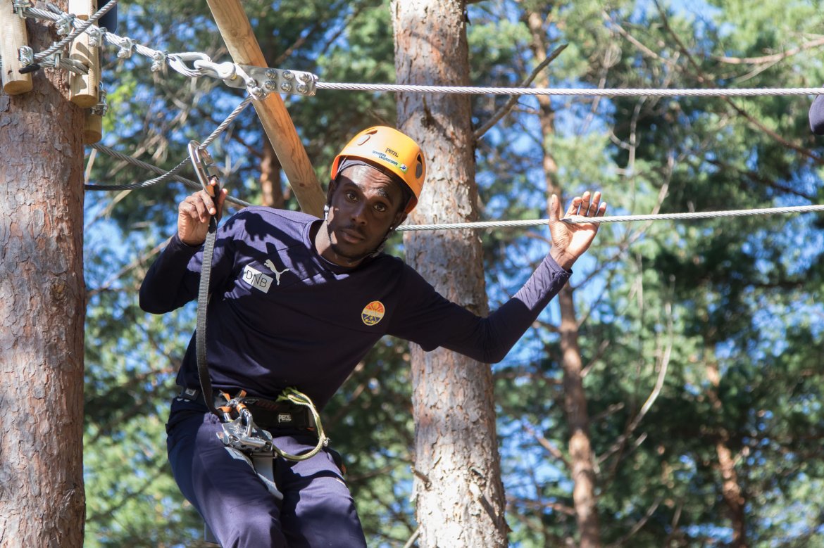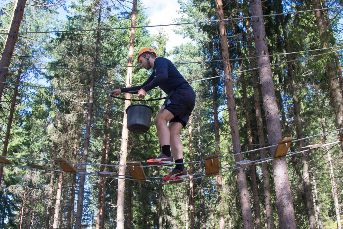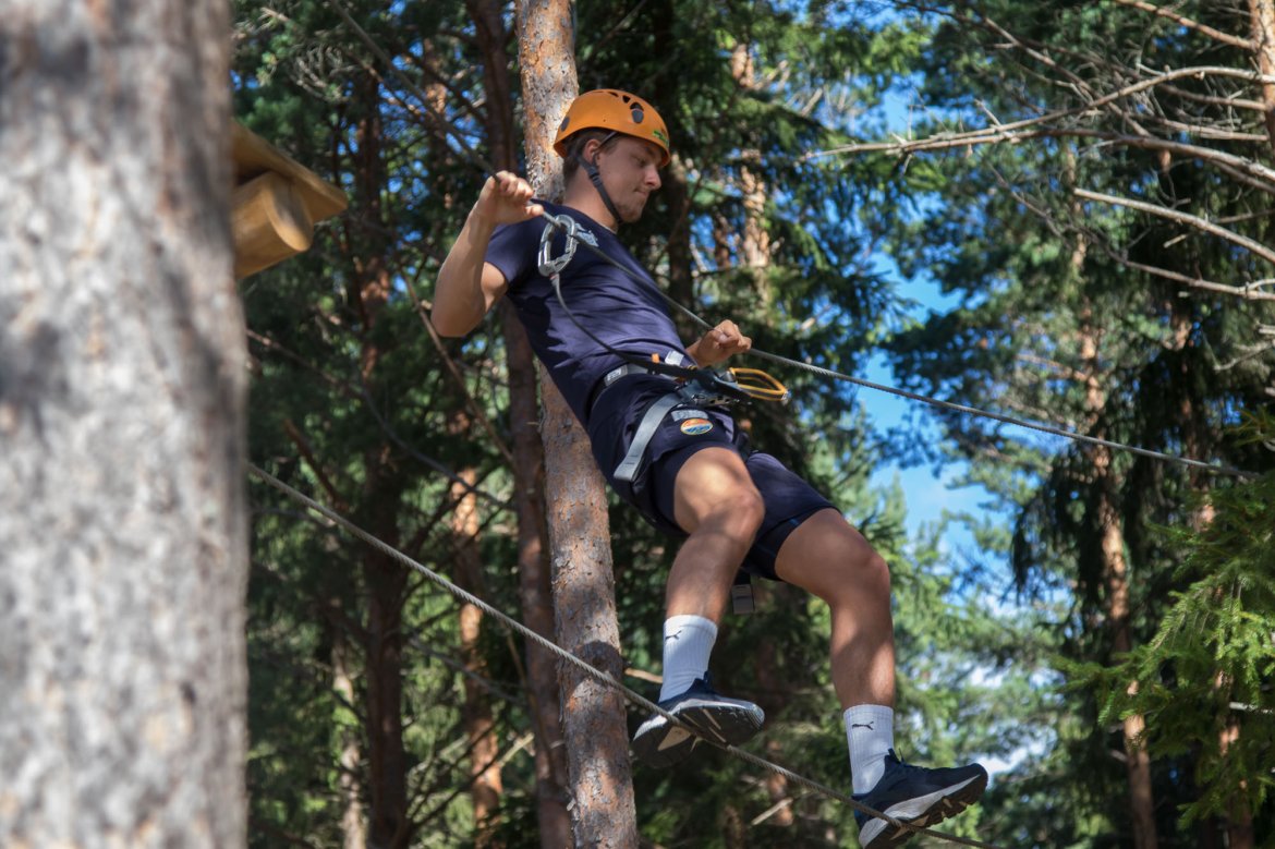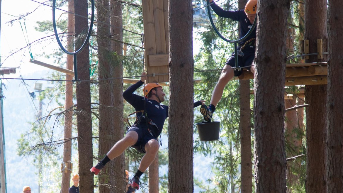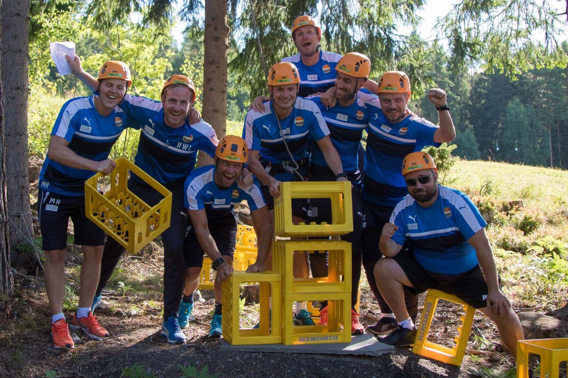 Enkelte fikk testet ut høydeskrekken, og gutta måtte virkelig jobbe hardt for poengene. Teambuildingen i Aron ble avsluttet med en "Speedy Zip-Line" der man kan komme opp i en hastighet på 65 km/t.
