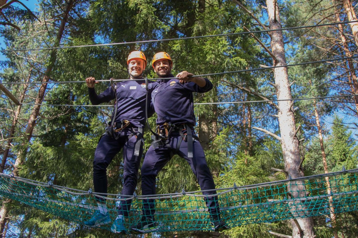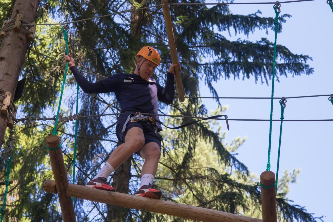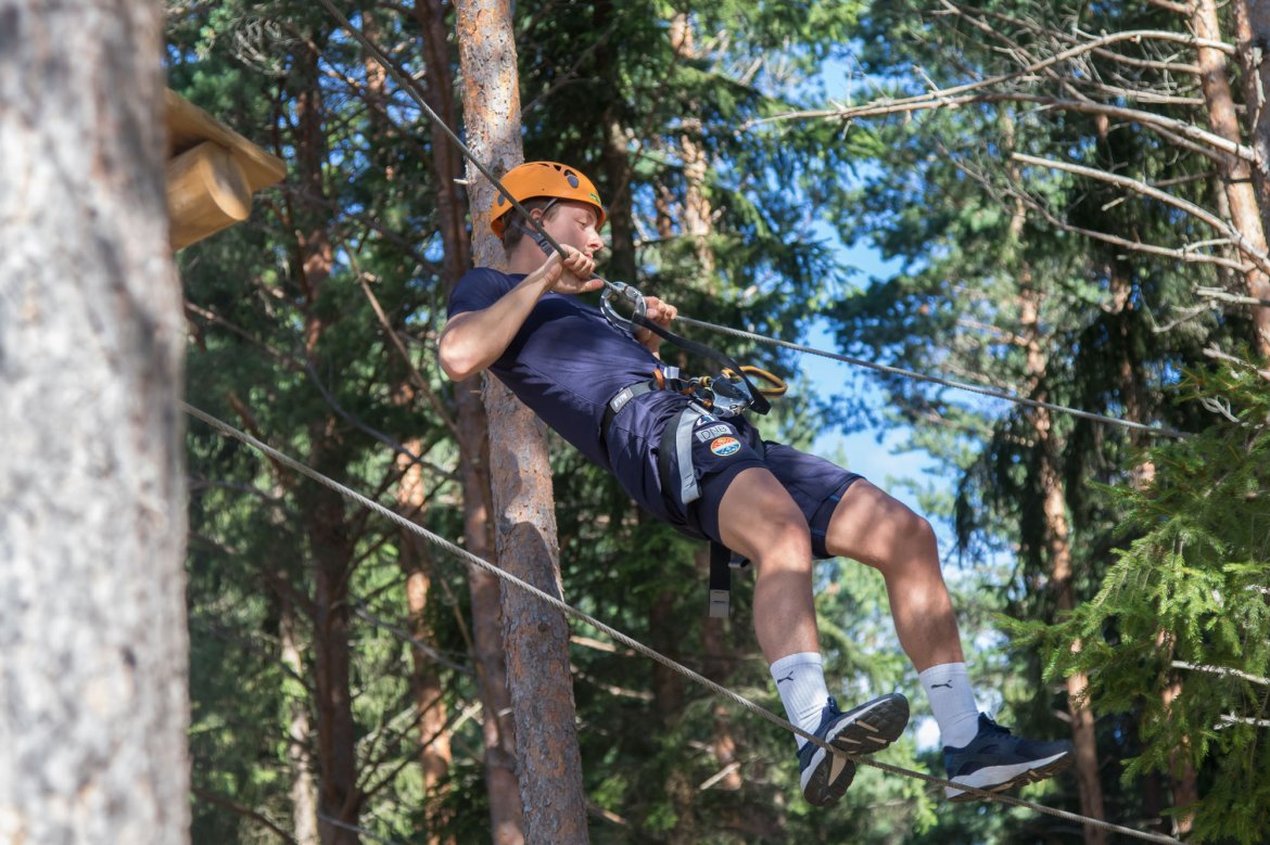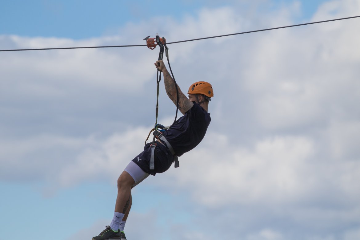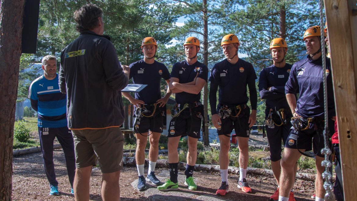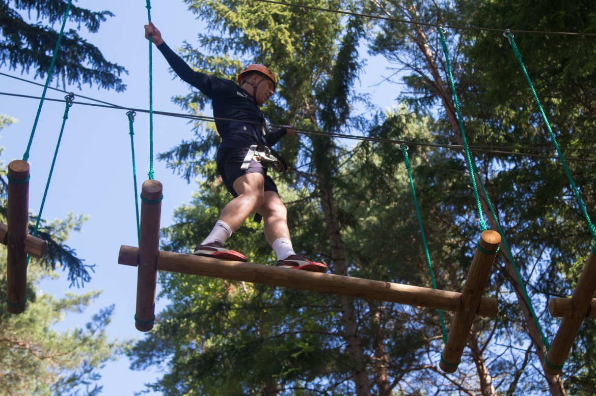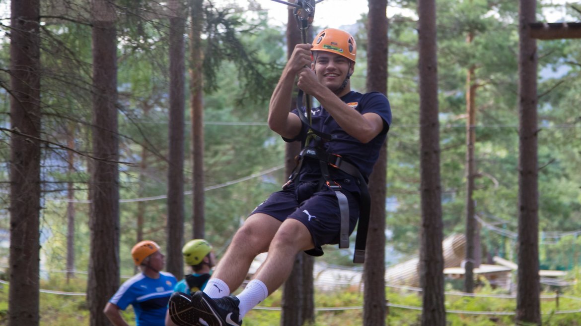 Enkelte fikk testet ut høydeskrekken, og gutta måtte virkelig jobbe hardt for poengene. Teambuildingen i Aron ble avsluttet med en "Speedy Zip-Line" der man kan komme opp i en hastighet på 65 km/t.