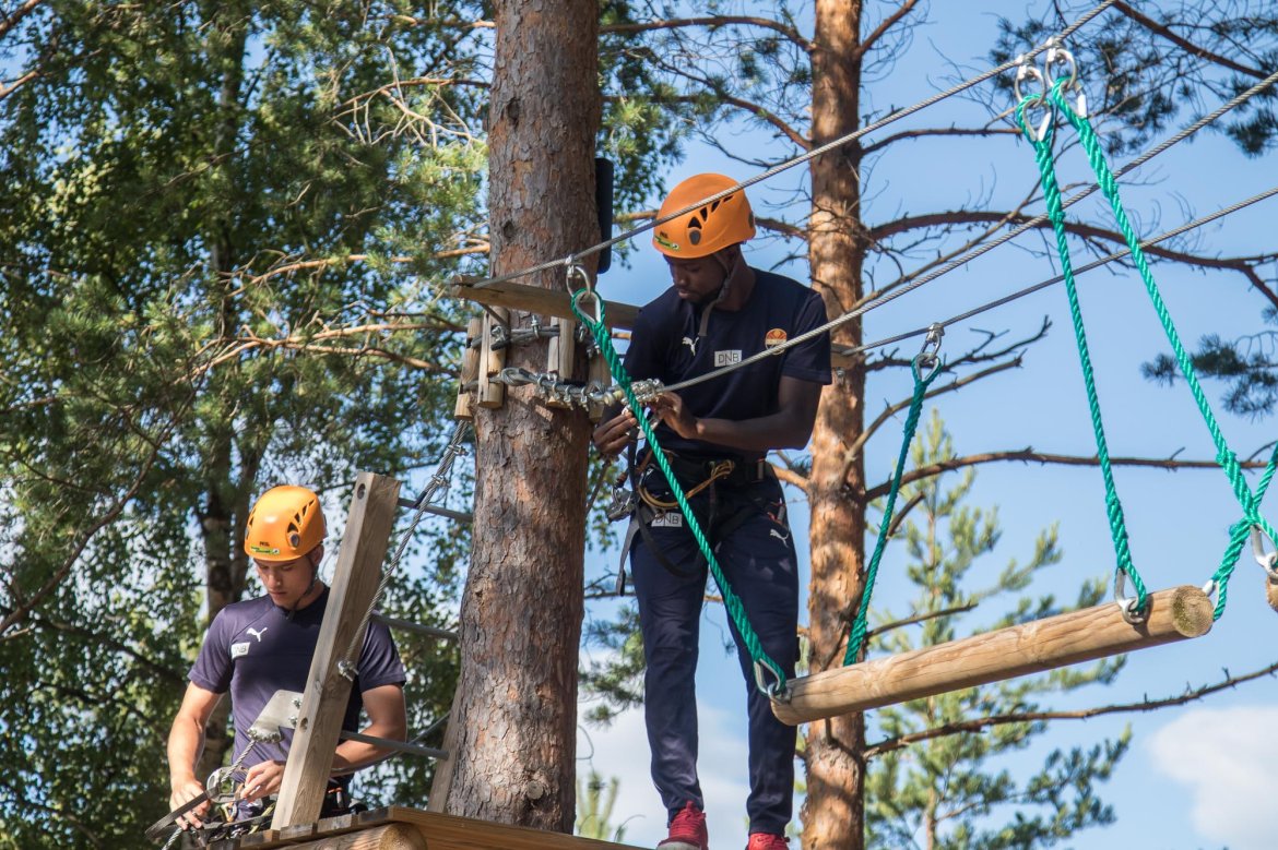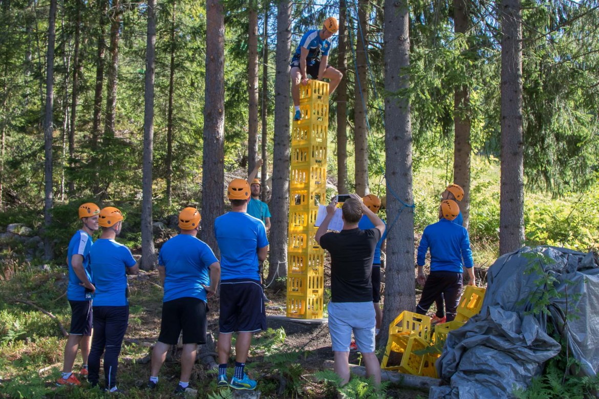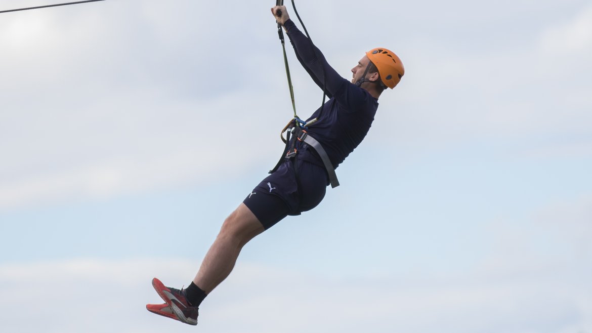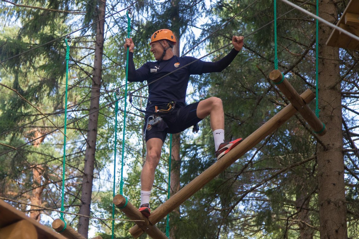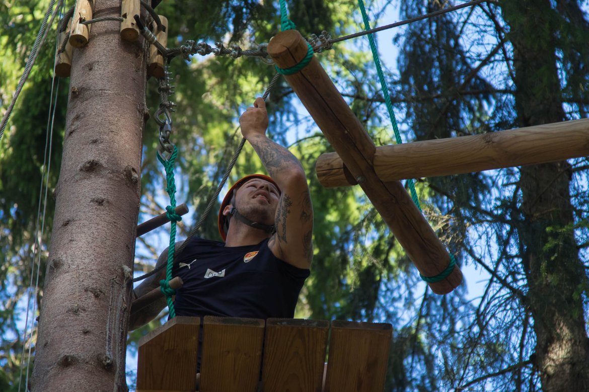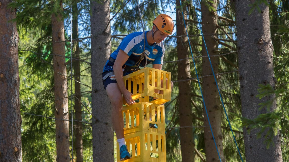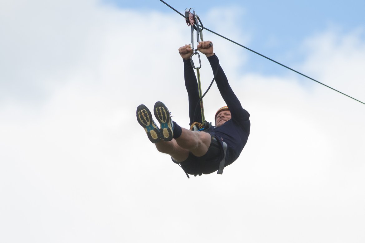Enkelte fikk testet ut høydeskrekken, og gutta måtte virkelig jobbe hardt for poengene. Teambuildingen i Aron ble avsluttet med en "Speedy Zip-Line" der man kan komme opp i en hastighet på 65 km/t.