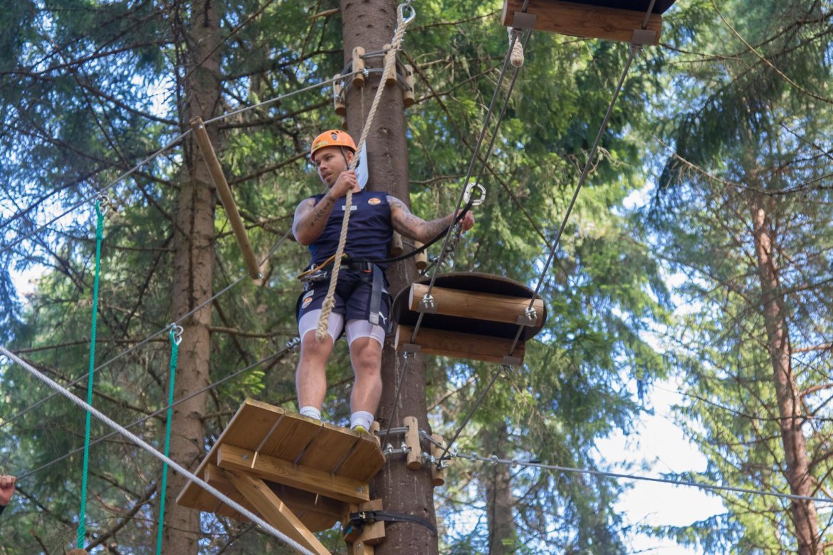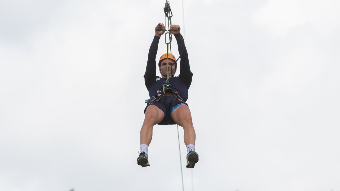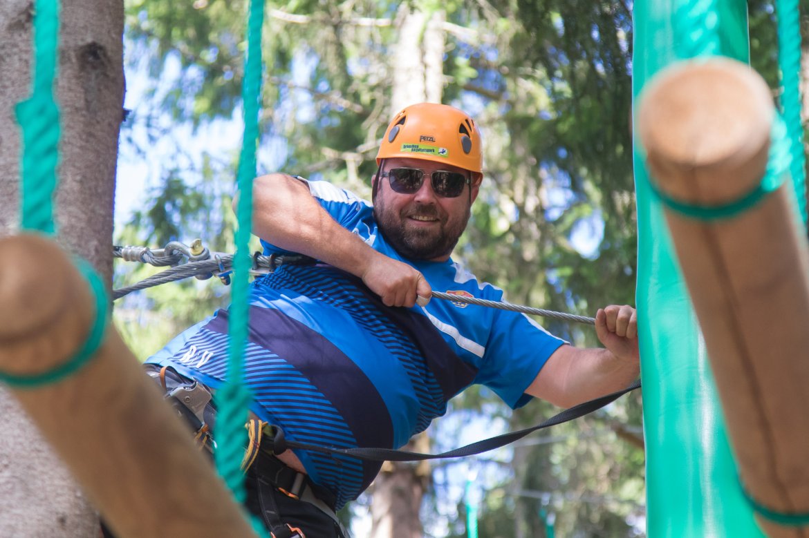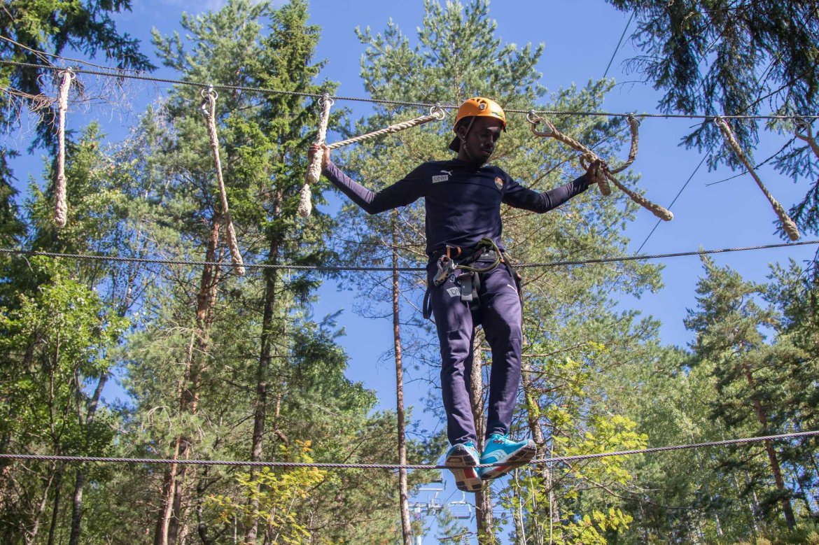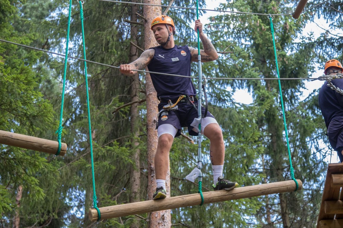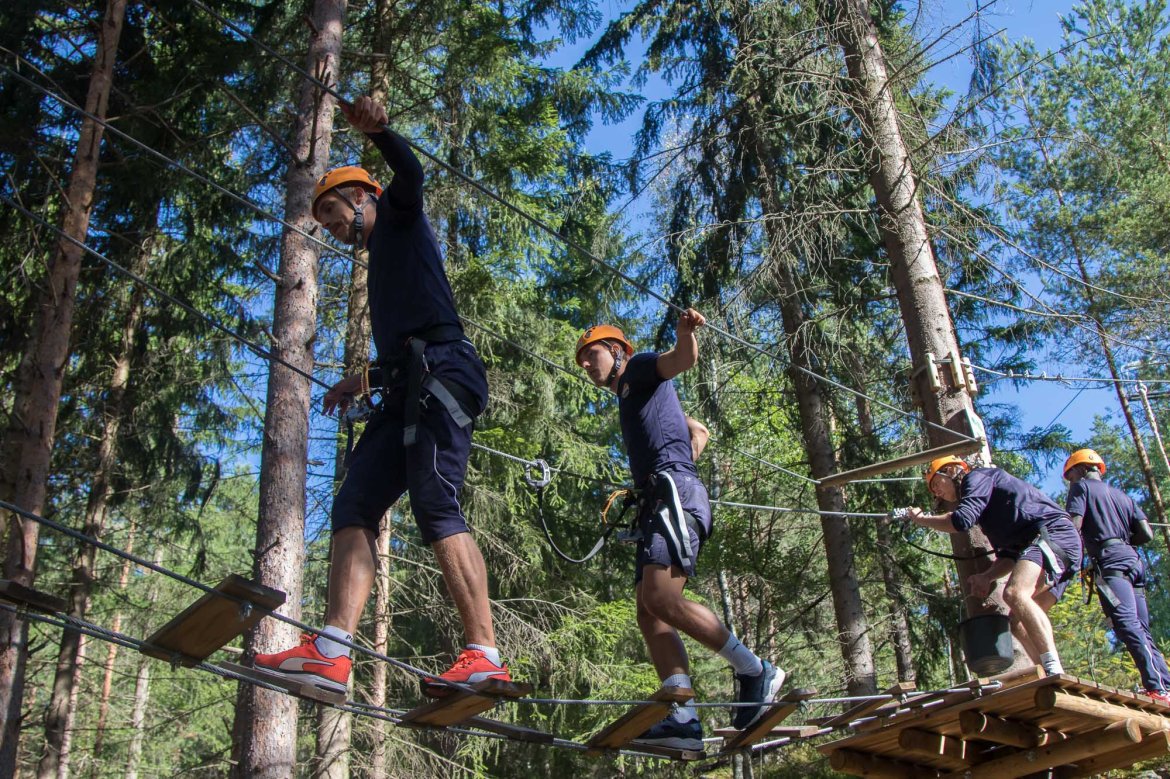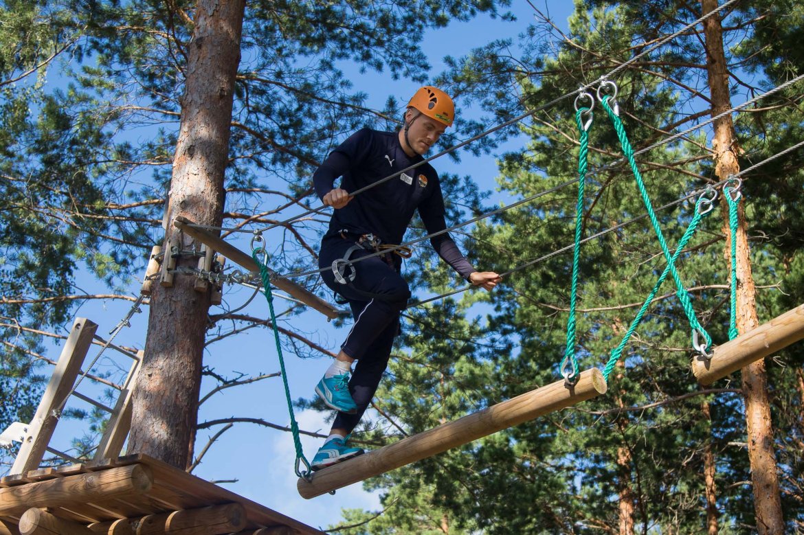 Enkelte fikk testet ut høydeskrekken, og gutta måtte virkelig jobbe hardt for poengene. Teambuildingen i Aron ble avsluttet med en "Speedy Zip-Line" der man kan komme opp i en hastighet på 65 km/t.