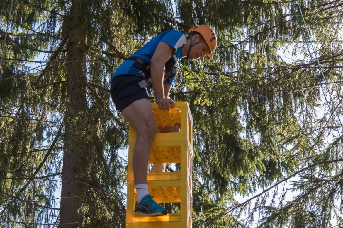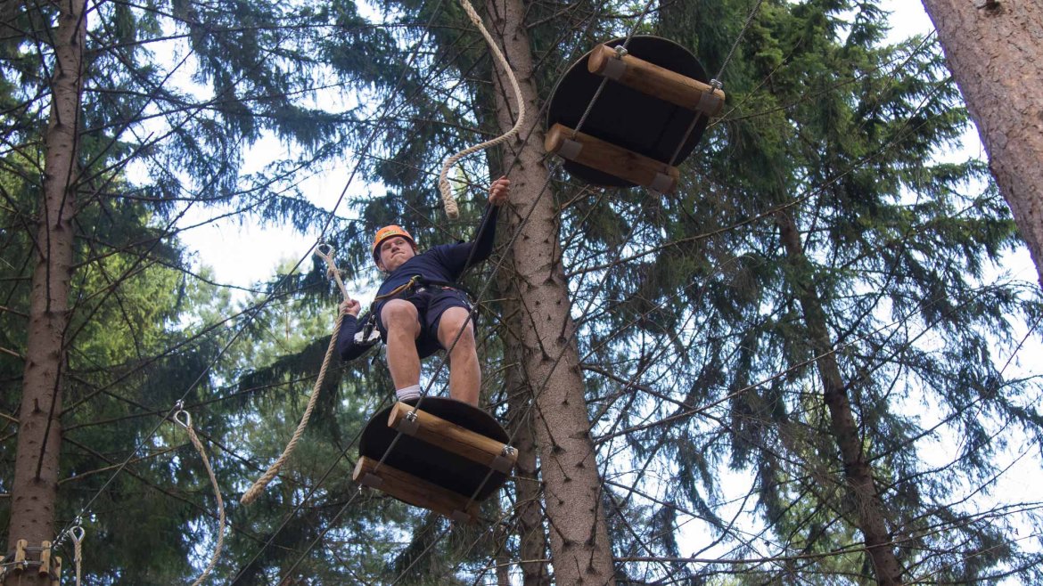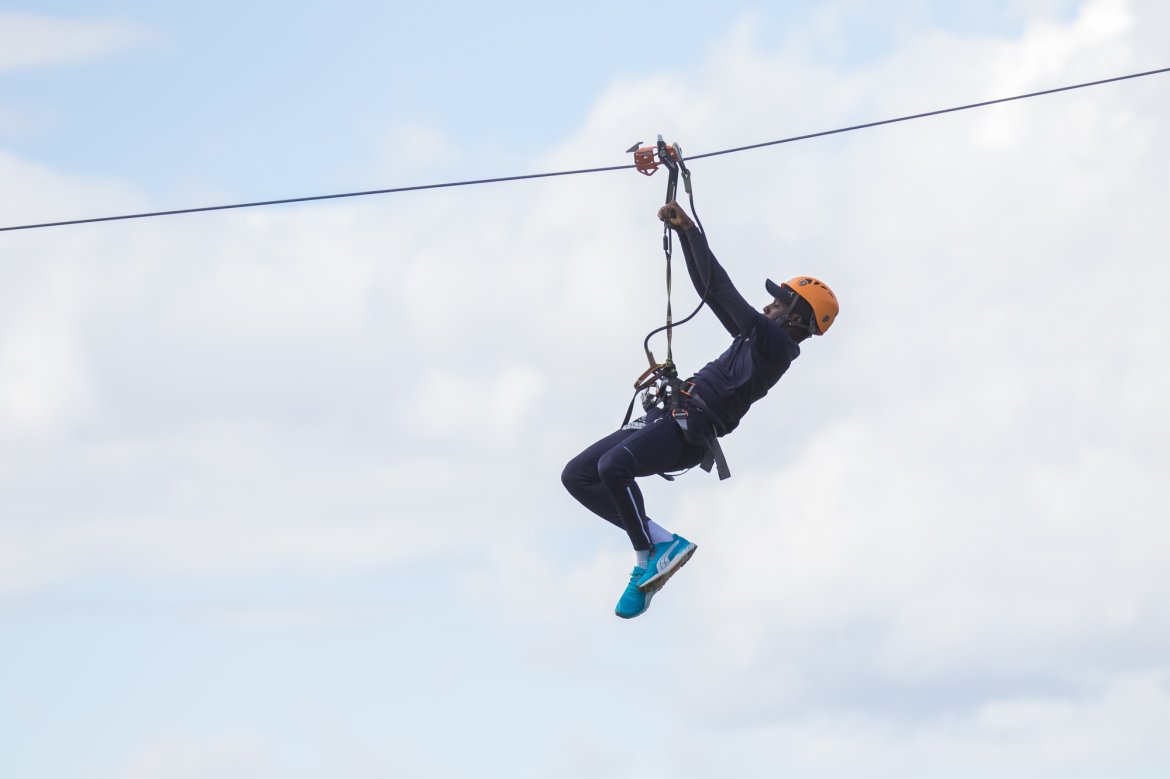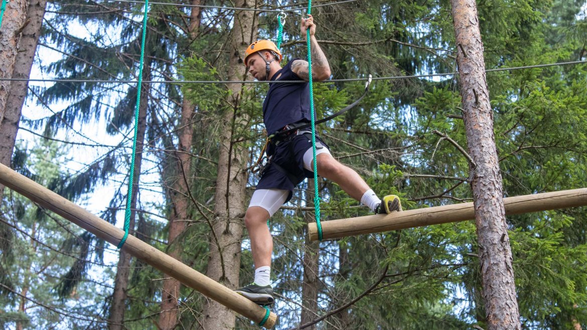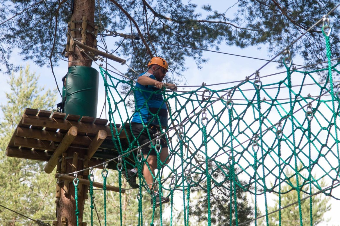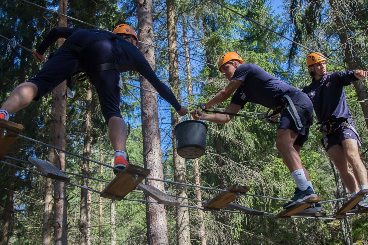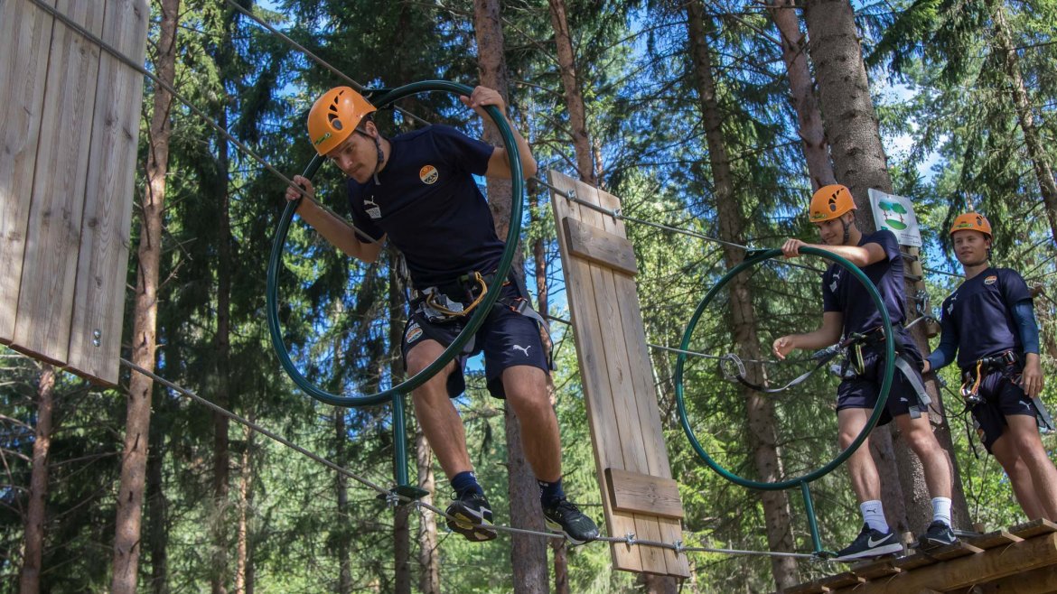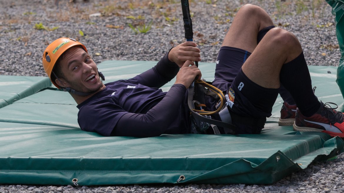 Enkelte fikk testet ut høydeskrekken, og gutta måtte virkelig jobbe hardt for poengene. Teambuildingen i Aron ble avsluttet med en "Speedy Zip-Line" der man kan komme opp i en hastighet på 65 km/t.