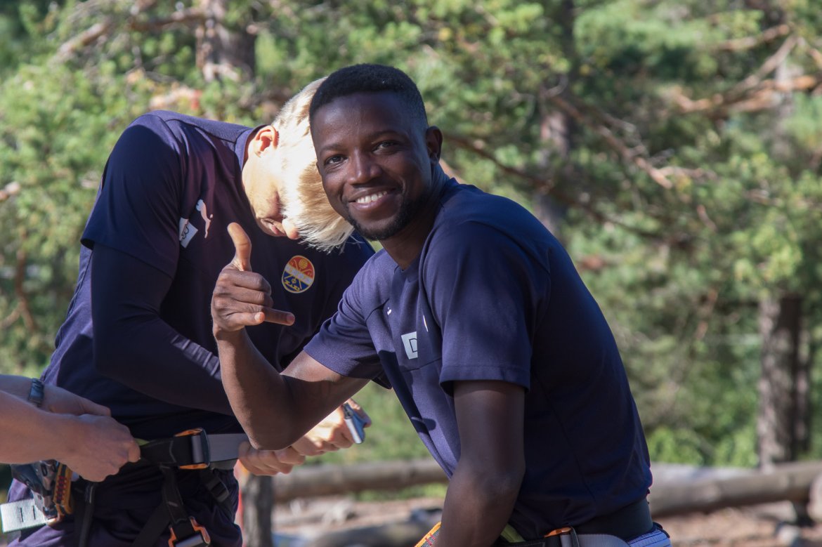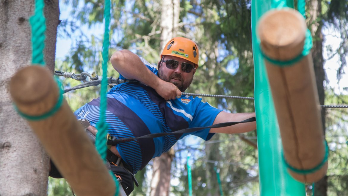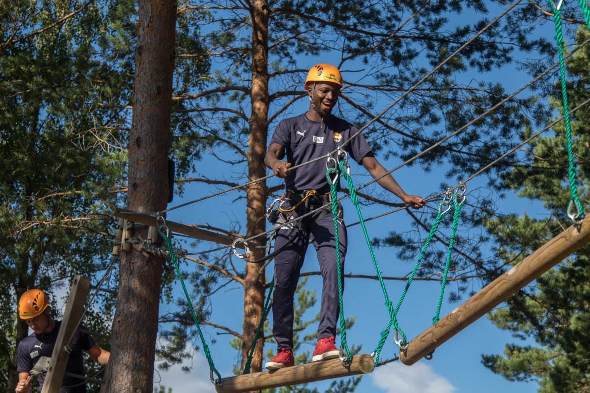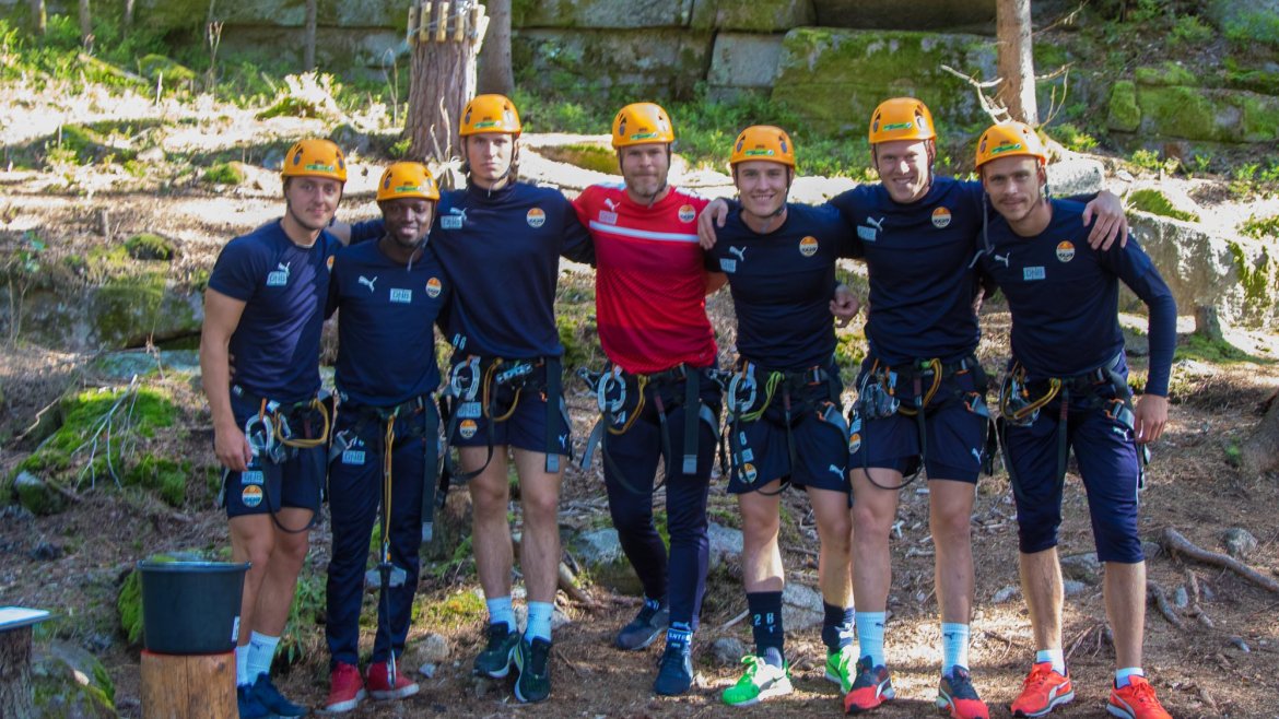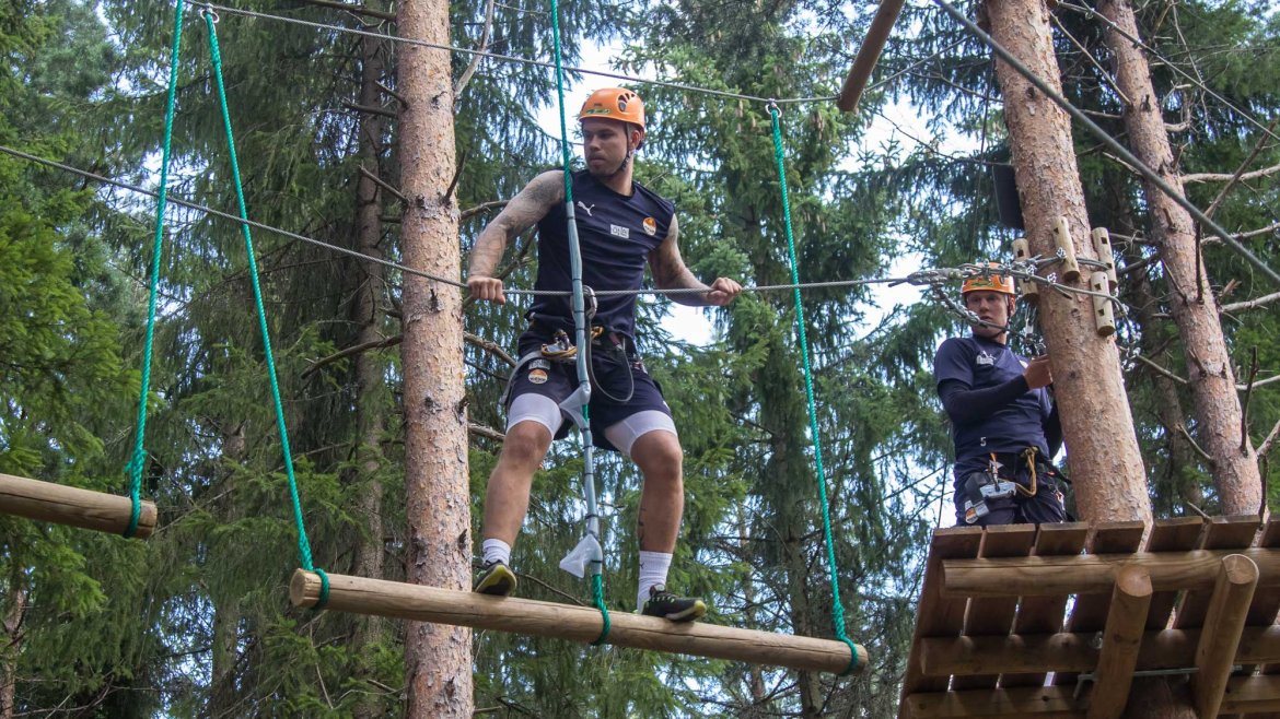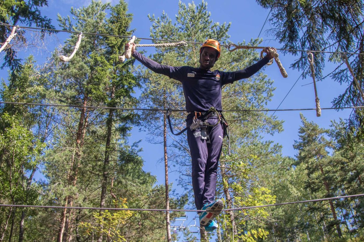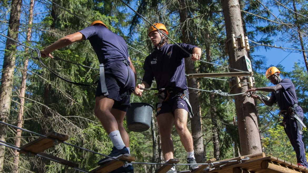 Enkelte fikk testet ut høydeskrekken, og gutta måtte virkelig jobbe hardt for poengene. Teambuildingen i Aron ble avsluttet med en "Speedy Zip-Line" der man kan komme opp i en hastighet på 65 km/t.