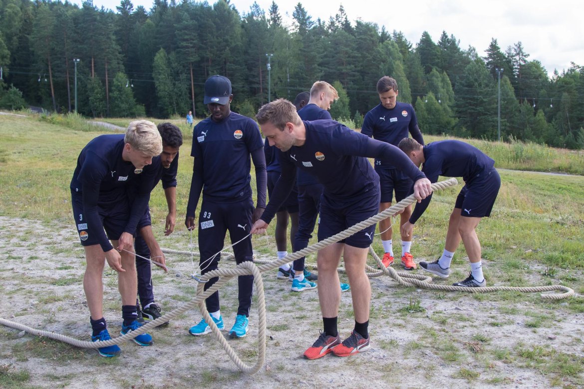 Erik Graaberg og resten av gjengen på Drammen Skisenter/Drammen Aktivitetssenter hadde sydd sammen et skikkelig kult opplegg for gutta. Spillere og støtteapparat ble delt inn i lag, og konkurranseinstinktet vokste i takt med øvelsene.