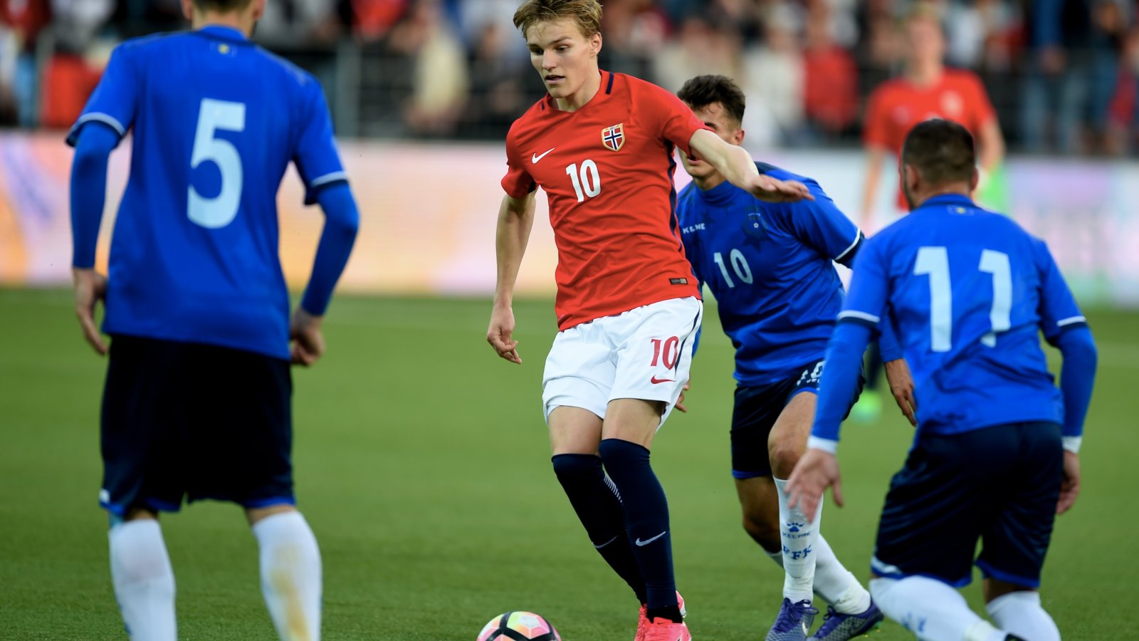 Fredag ble det tap 3-2 mot samme nasjon i den andre kampen i gruppa. Norge gikk opp i en tomålsledelse etter et vidunderlig frispark fra Martin Ødegaard, men Kosovo snudde og avgjorde til sin fordel helt på tampen.