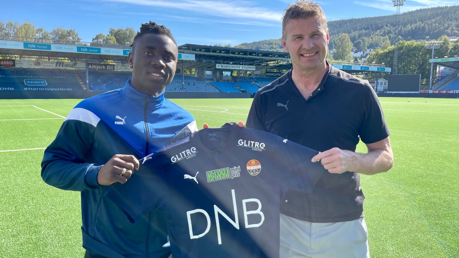 Kadiri ankom Drammen søndag kveld og hilste på sine nye lagkamerater på Marienlyst mandag. Nigerianeren rakk også en rask treningsøkt etter å ha signert på leieavtale ut inneværende sesong.