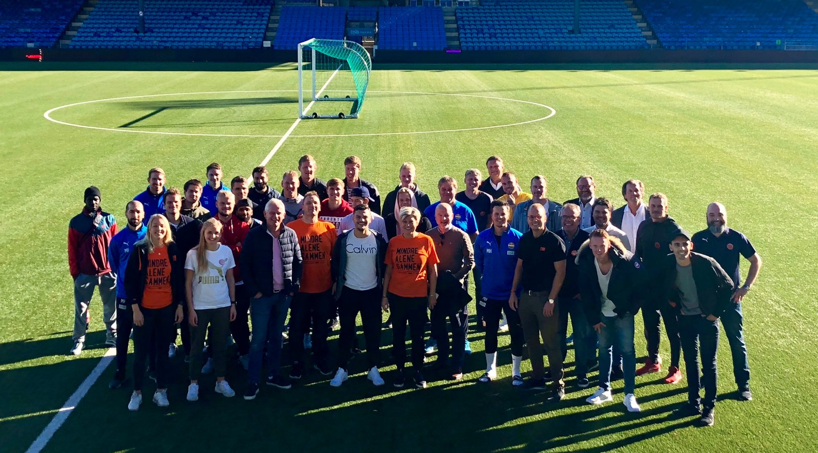 I Strømsgodset stilte vi toppet lag med spillere, trenere, ledere, ansatte og representanter for styret. Alle var samlet på Marienlyst for å gi sitt bidrag til Kirkens Bymisjon.