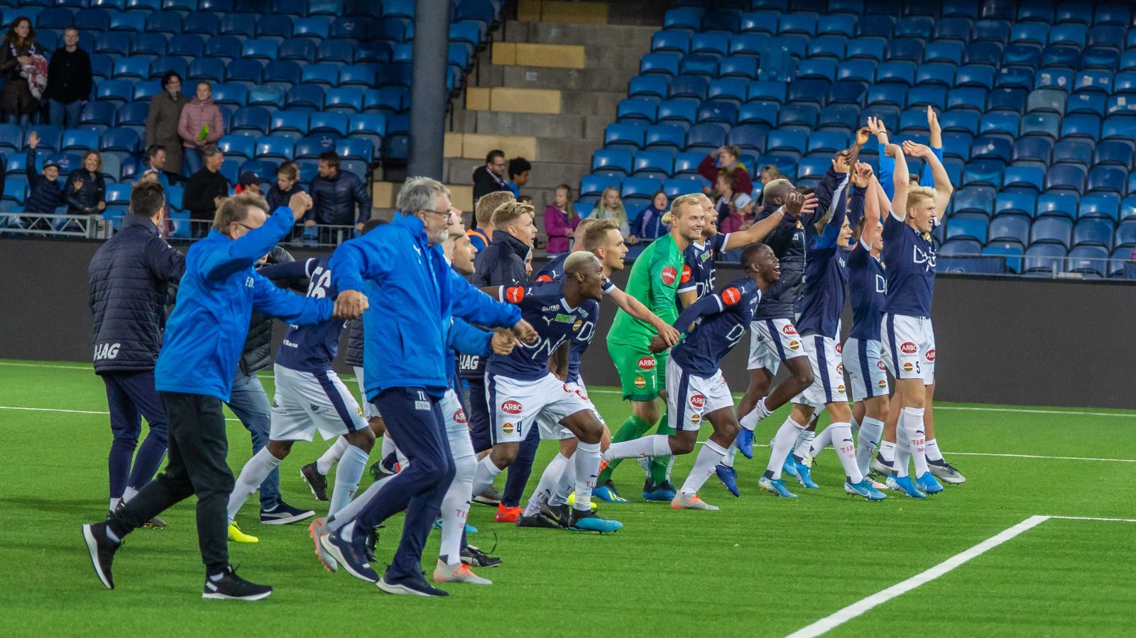 Etter det stengte vi mer eller mindre bakover. Ranheim jaget på for utligning, og det var nok ingen verken på tribunen eller foran TV-skjermene som følte seg trygge før Ola Hobber Nilsen blåste av tre minutter på overtid – men vi nektet Ranheim å produsere ordentlige målsjanser i sluttminuttene, og sørget for at både nullen ble holdt og at de tre poengene ble igjen i Drammen.