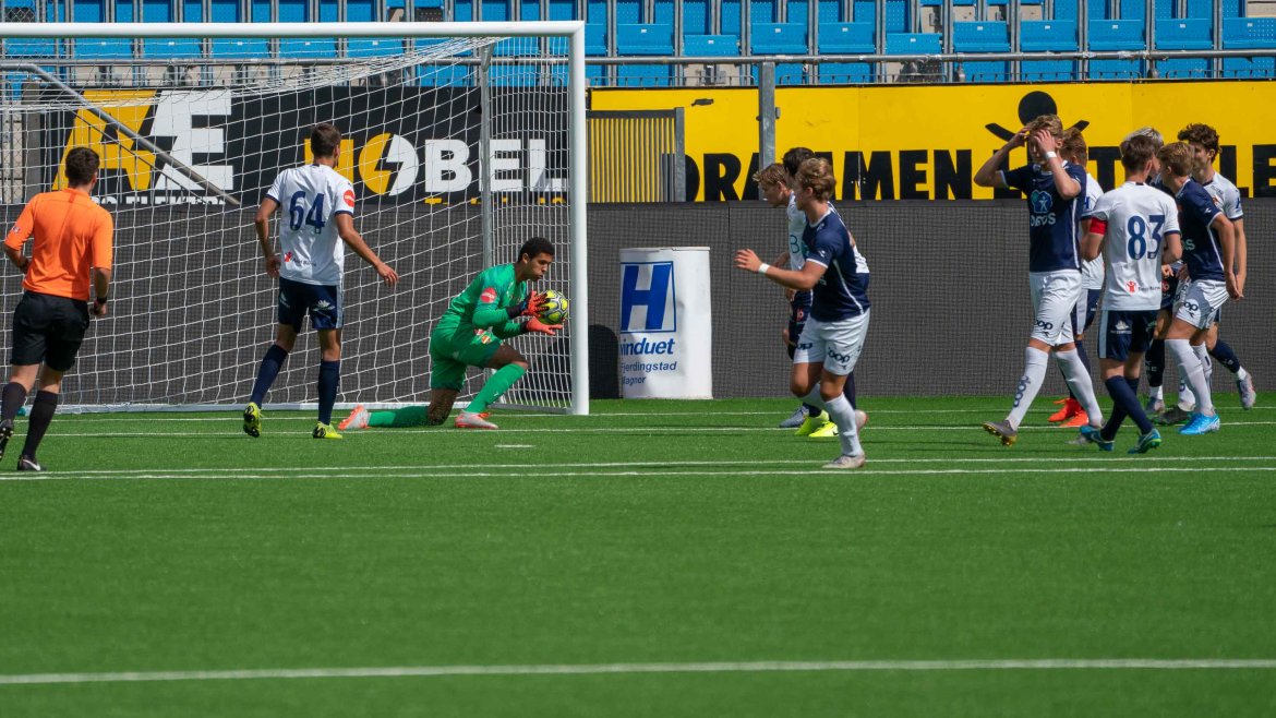 Etter 18 minutter satte Aleksander Biermann Stenseth inn ledermålet på straffe og gjennom 1. omgangen hadde våre gutter relativt god kontroll. Etter sidebytte tok Viking mer over, dog uten å skape all verden. Etter 78 minutter gikk i stedet Godset opp i 2-0 ved Noah Molvær Antonsen. Flere mål ble det ikke og dermed har vi et godt utgangspunkt foran returkampen i Stavanger om en måneds tid.