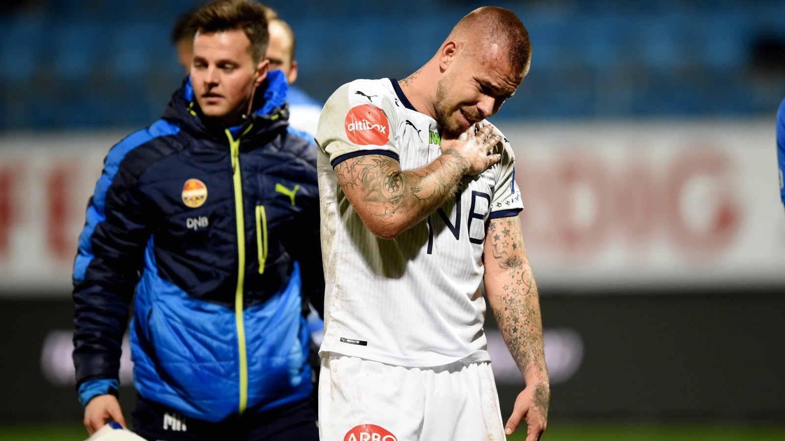 Fem minutter før slutt av kampen mot Sandefjord gikk Marcus Pedersen i bakken etter en duell. Han landet forkjært og forlot banen med store smerter.