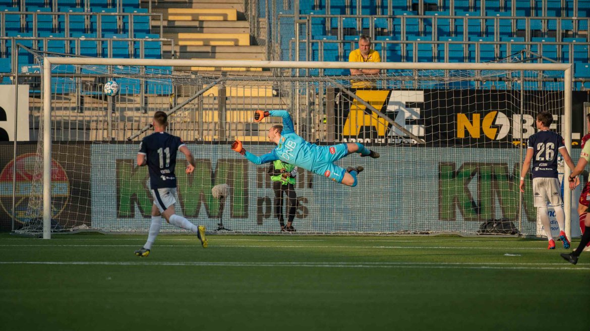 Allerede før det var spilt seks minutter tok gjestene fra Nordmøre ledelsen etter at vi pådro oss brudd i eget felt i et forsøk på å spille oss ut. Gjestene vant ballen, og alene med Viljar Myhra scoret Flamur Kastrati kampens første mål.
