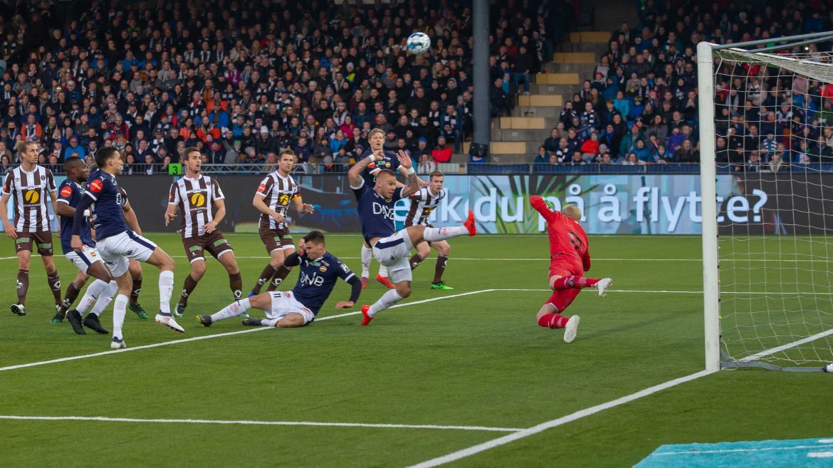Kun sekunder senere var vi nær utligning ved Mos, men MIF-målvakt Julian Faye Lund fikk lirket ballen til corner. Gjenopplev dette nedenfor.