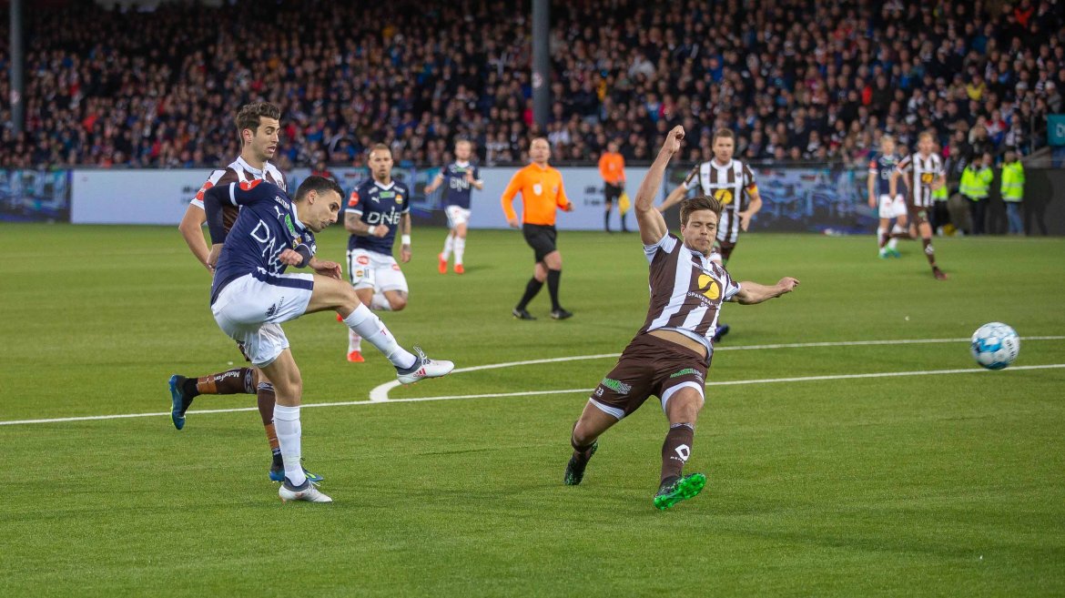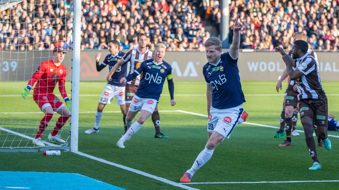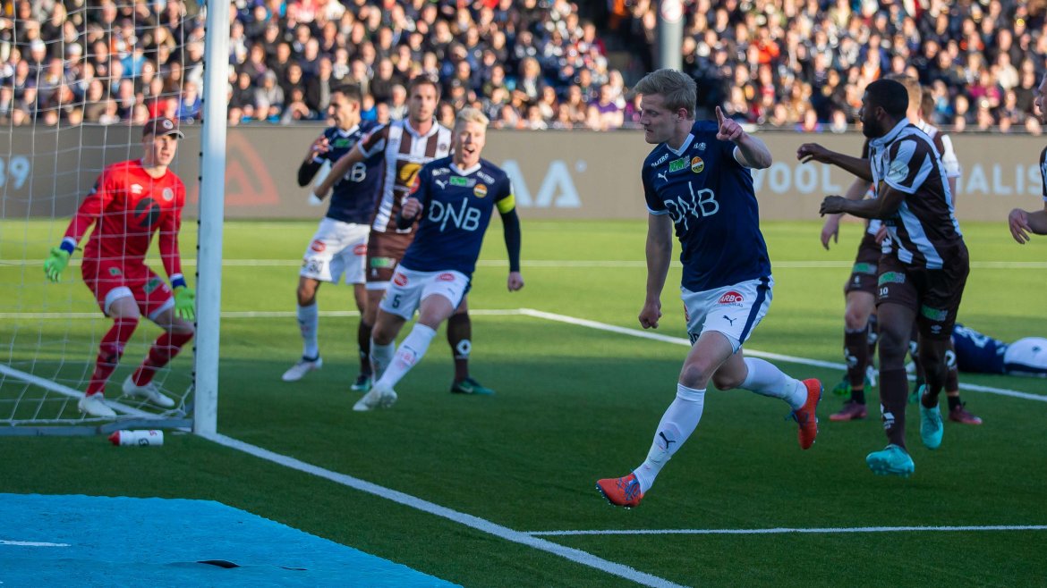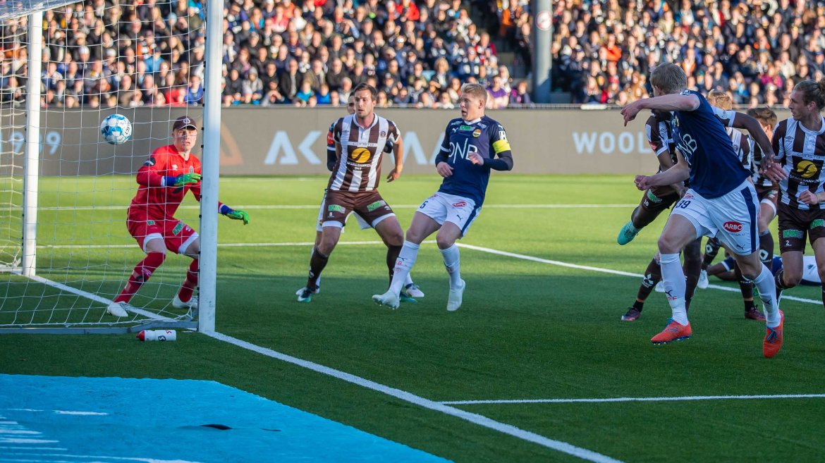 De tok også ledelsen etter ni minutters spill. Et hjørnespark ble slått inn fra høyre, og på bakre raget Sondre Solholm Johansen høyest og headet gjestene i ledelsen.