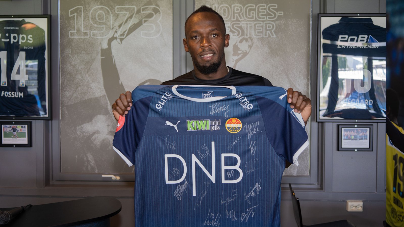 Men først ser Lightning Bolt frem til syv dager i Drammen sammen med Strømsgodset. Han er tildelt drakt nummer 9.58 hos oss, noe som selvsagt er verdensrekorden på 100 meter.