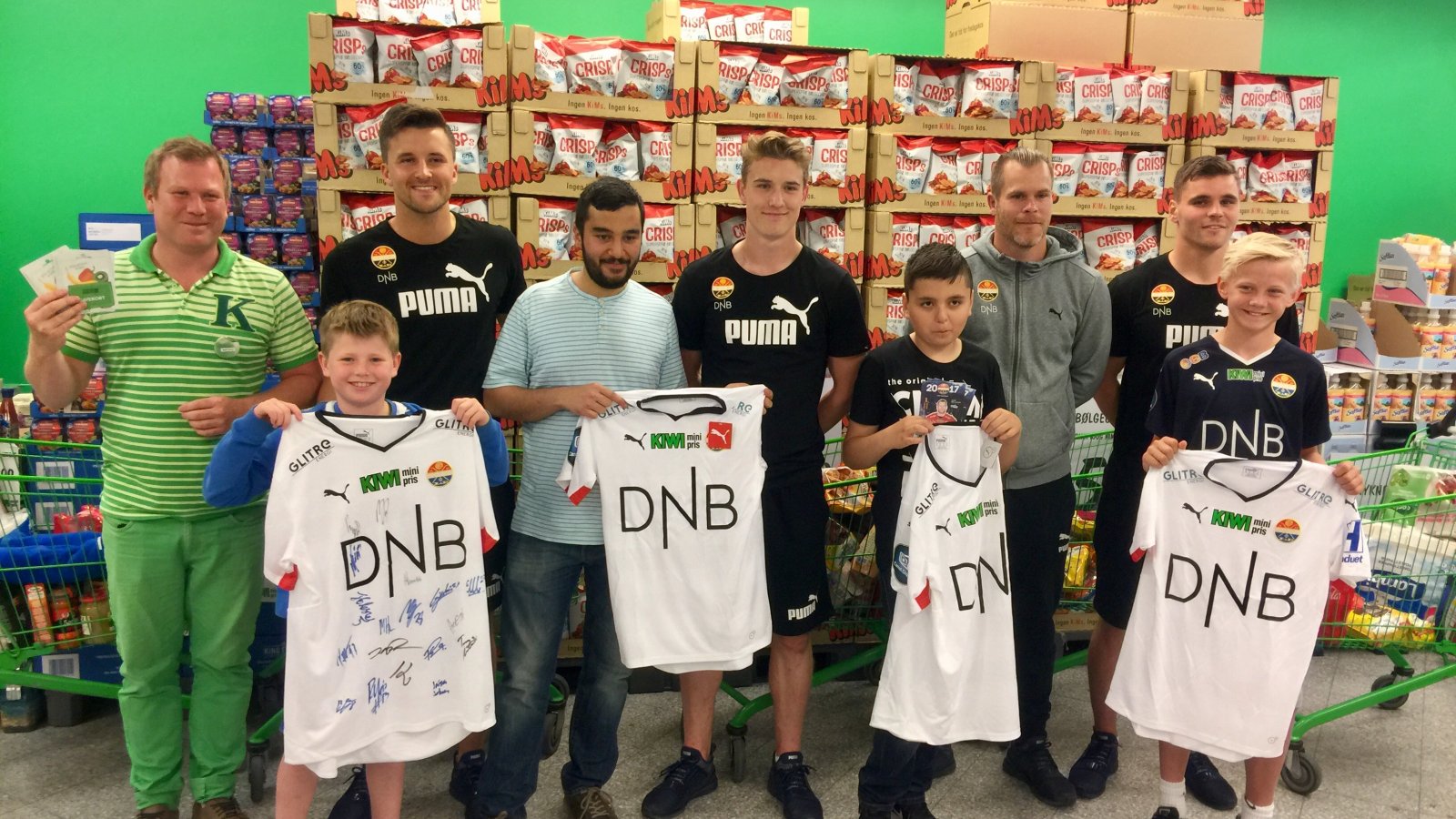 Stian Ringstad, Marius Høibråten, Espen Bugge Pettersen og Kristoffer Tokstad var tente og klare da de ankom Norges største Kiwi-butikk på Ligosenteret.