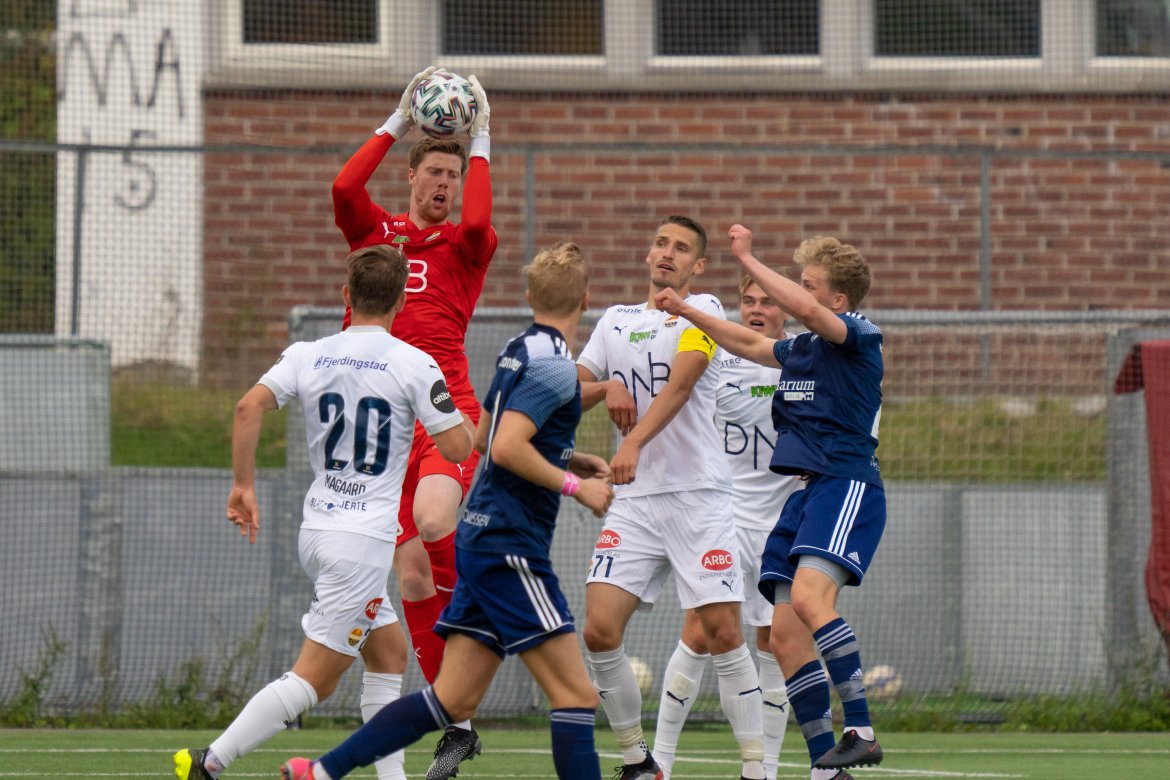 Midtstopperen headet kontant inn et frispark fra Herman Stengel, via tverrliggeren og ned i mål. En meget god avslutning fra midtstopperen som var fremme i feltet på en dødball.