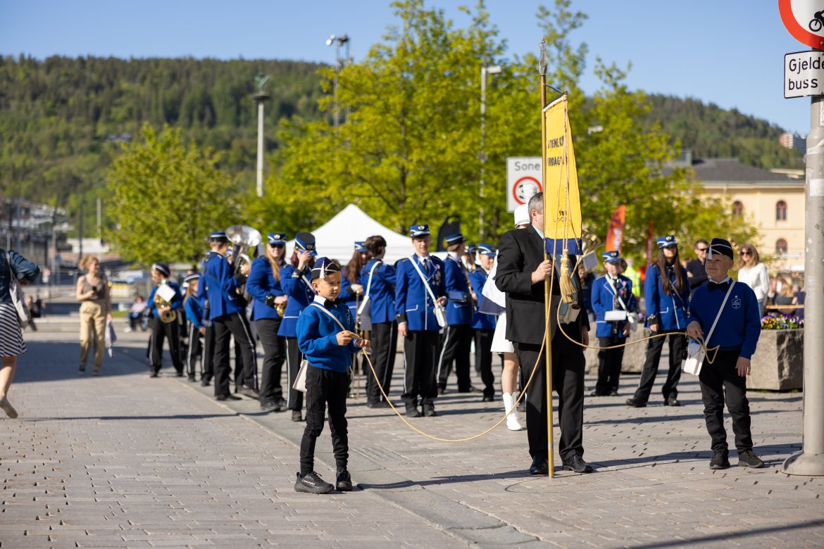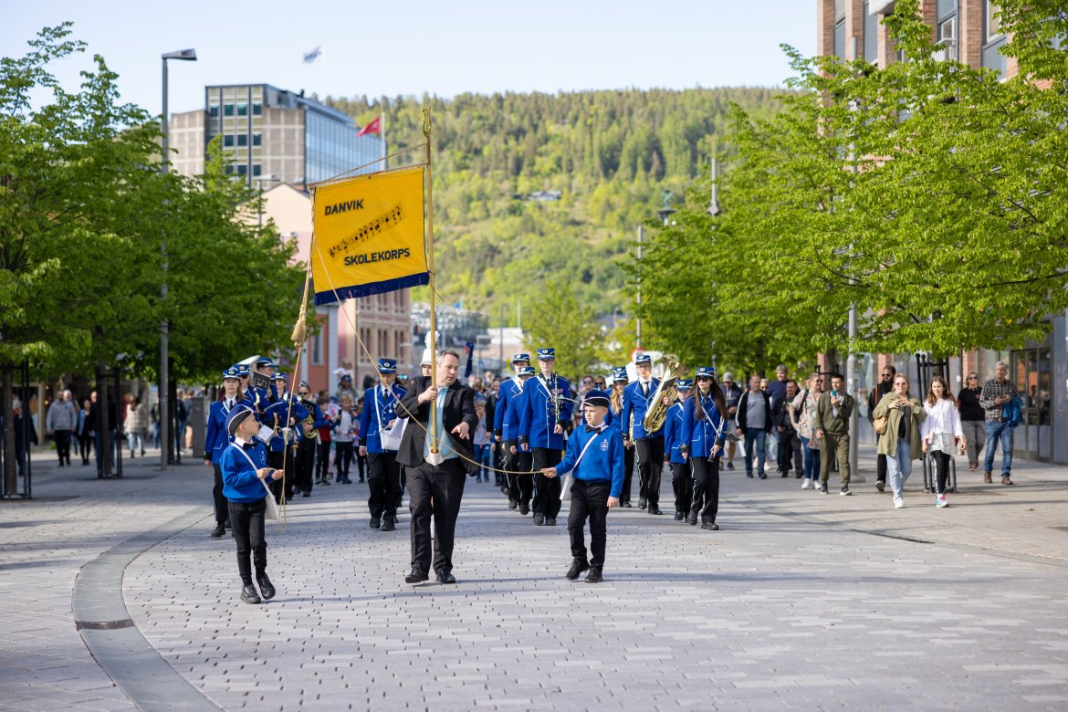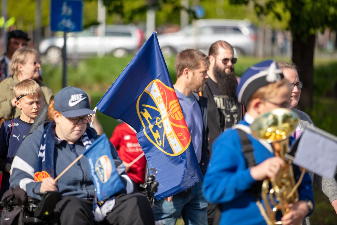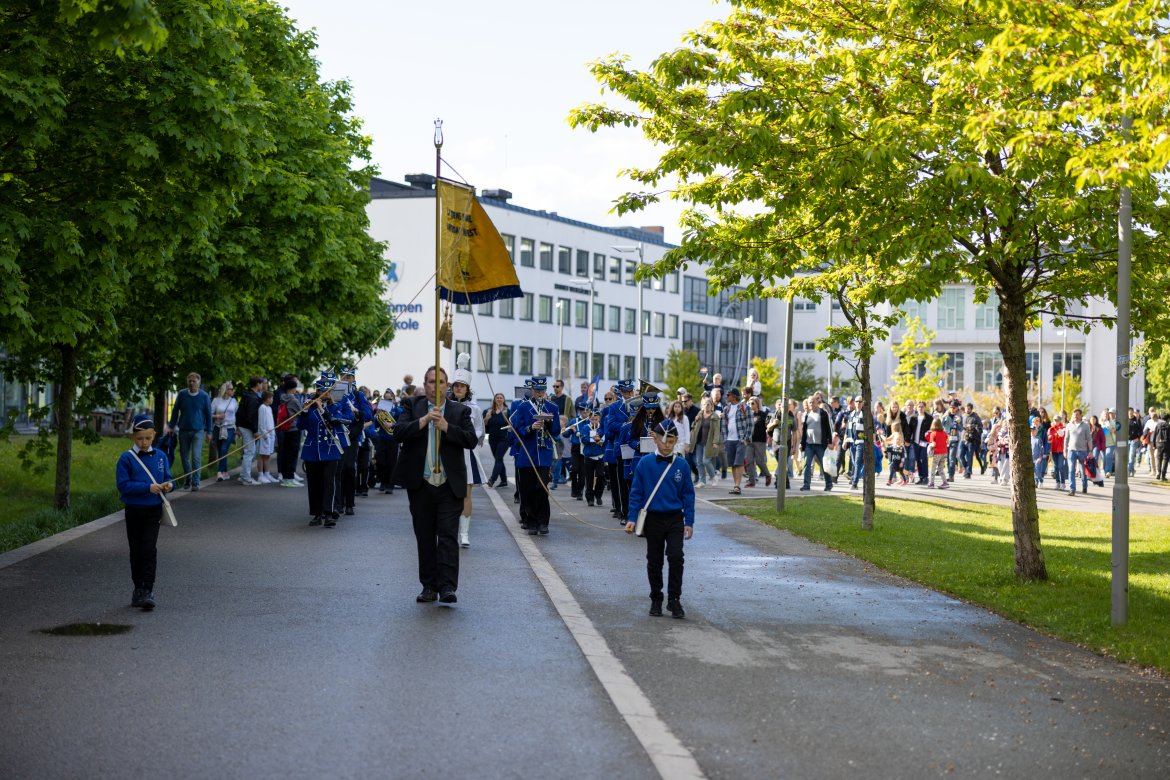 Etter et par timer med aktiviteter på torget spilte Danvik Skolekorps opp til musikk og avgang mot stadion. Flere hundre hengte seg på i Godset-toget som spaserte til stadion for å overvære Strømsgodset - Vålerenga på Marienlyst.