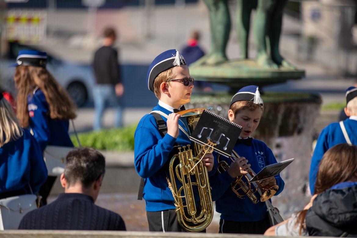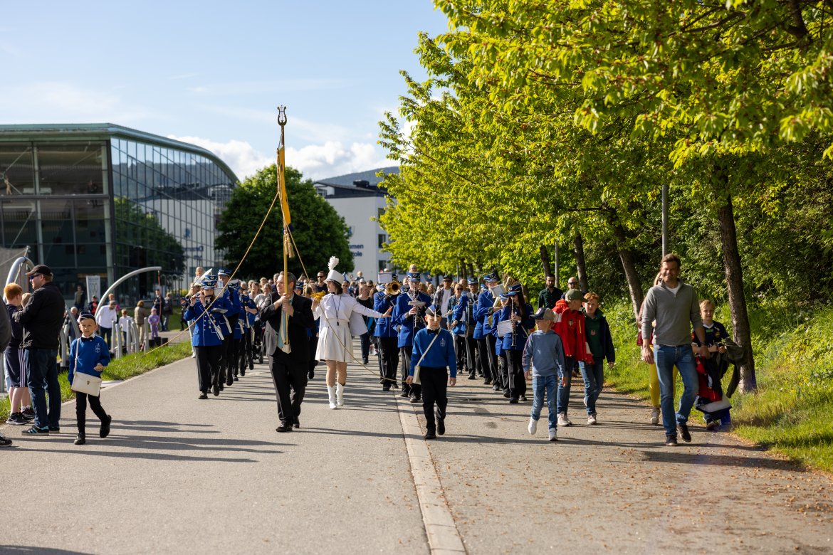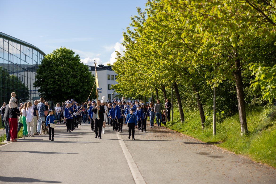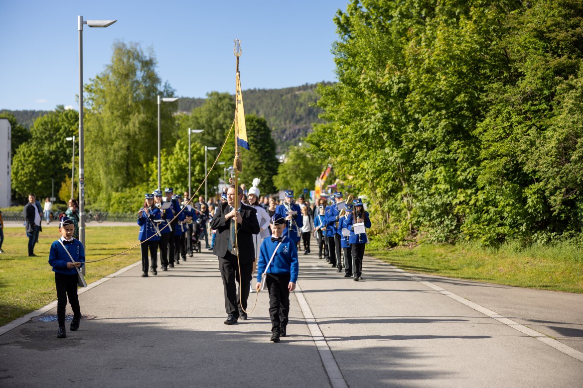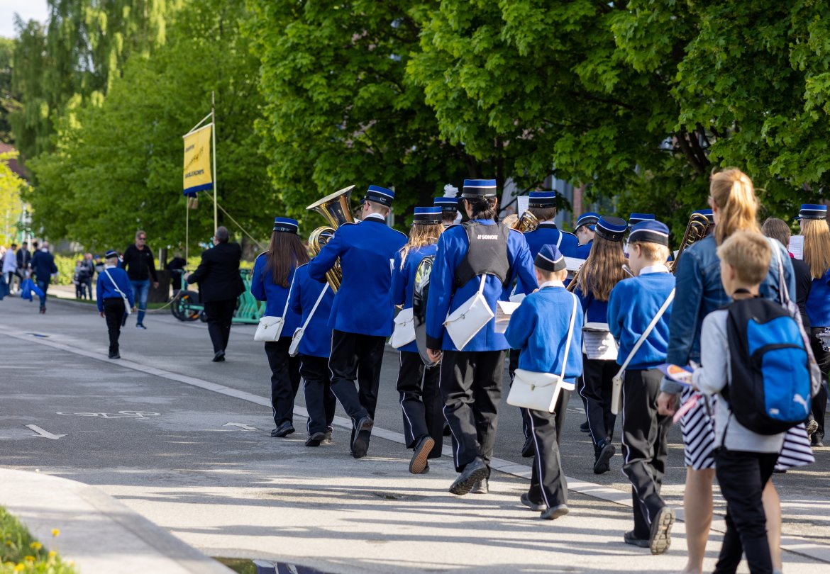 Etter et par timer med aktiviteter på torget spilte Danvik Skolekorps opp til musikk og avgang mot stadion. Flere hundre hengte seg på i Godset-toget som spaserte til stadion for å overvære Strømsgodset - Vålerenga på Marienlyst.