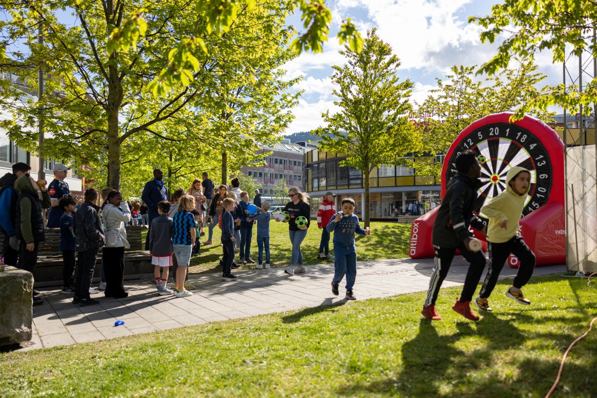 Sammen med Byen Vår Drammen og Drammen Streetfood inviterte vi barn og unge til familievorspiel på Strømsø torg på søndag. Solen tittet frem og folk strømmet til for å komme i stemning før kampen mot Vålerenga.