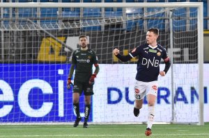 Kreshnik Krasniqi banket inn sitt første mål for Strømsgodset, og sikret ett poeng mot serieleder Bodø/Glimt.