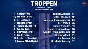Her er 20-mannstroppen til morgendagens cupkamp mot Stabæk.