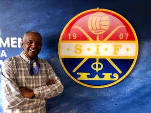Antonio Delgado fra Kapp Verde var den første mørkhudede spilleren i norsk toppfotball. I dag kom 80-åringen innom for å kjøpe stein på Folkeveggen.