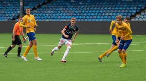 Ole Enersen (bildet) og resten av Team SIF måtte se seg slått av gjestene fra Haugesund i en jevn og spennende fotballkamp.