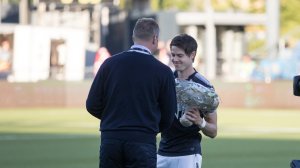 Lars Vilsvik fikk sin velfortjente hyllest av Marienlyst-publikummet. Hør hva jubilanten sa etter 3-1 seieren mot LSK.