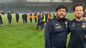 Kim Rolund og Eduard Werner fra GodsetUnionen prøvde seg på damelagstrening - med Gustav Valsvik og Kreshnik Krasniqi i rollen som kritiske supportere på tribunen. Se hvordan det gikk her.