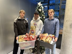 Forrige uke var Jonas Therkelsen, Kreshnik Krasiniqi og Fredrik Kristensen Dahl og overleverte julegaver til de som har minst før jul - takket være midler samlet inn i Blått Hjertes juleaksjon.