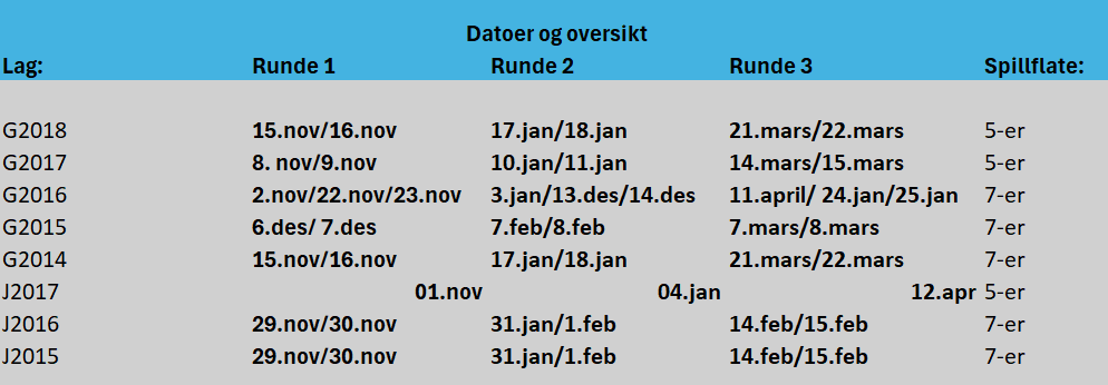 Under ser du oversikt over hvilke datoer som er satt av til de ulike aldersgruppene. OBS! Her kan det komme endringer underveis.