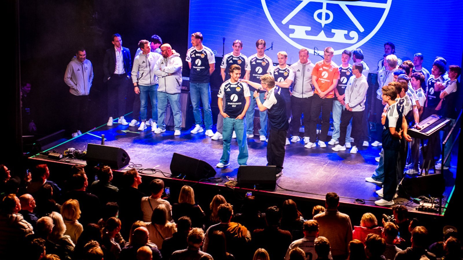 Først ut på scenen var damelaget, som ble presentert til stor applaus fra salen. Deretter tok GodsetUnionen over mikrofonen, og tradisjonen tro fikk de med seg hele salen på allsang og tribunelåter.