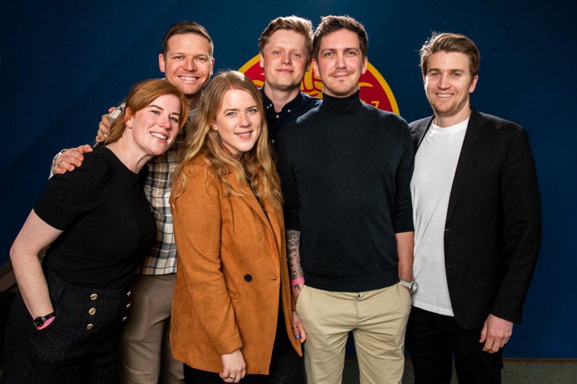 Kl. 19:00 var det klart for live-podcast med DT-tribunen, som samlet godt med folk i foajeen på Union Scene.
