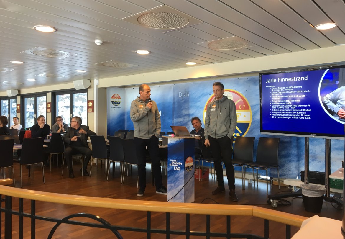 Deretter var det Torkel Knudsen og Jarle Finnestrands tur til å presentere det nye damelaget. Jarle er prosjektleder og primus motor for å få i gang dette laget, mens tidligere Strømsgodset-spiller Torkel trener laget sammen med Erik Kalmo.