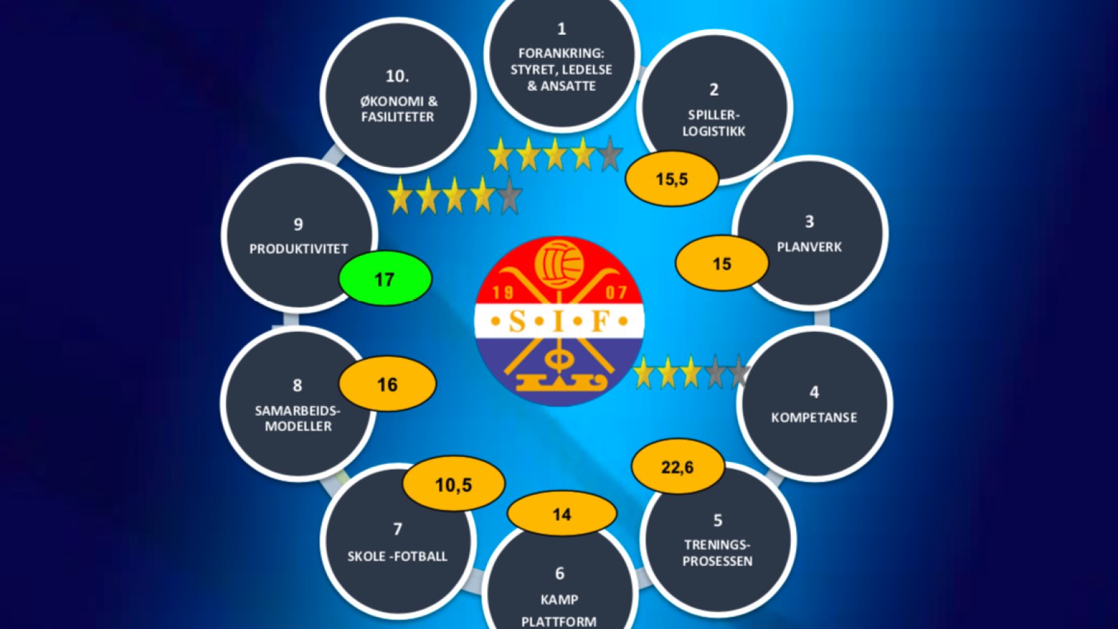 I evalueringen tildeles klubbene klassifiseringsnivå fra 1 til 5 etter hvor godt man scorer på ti områder: